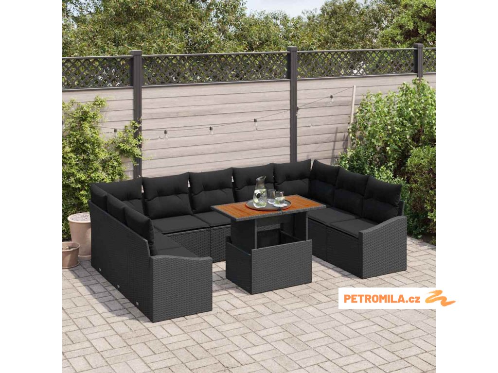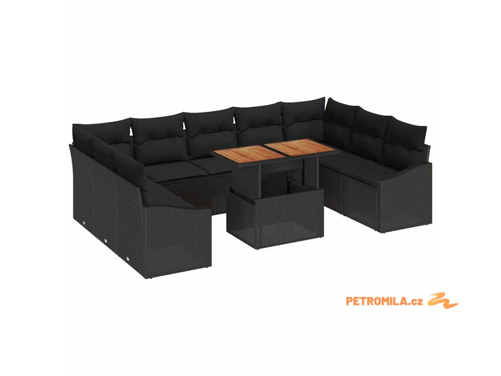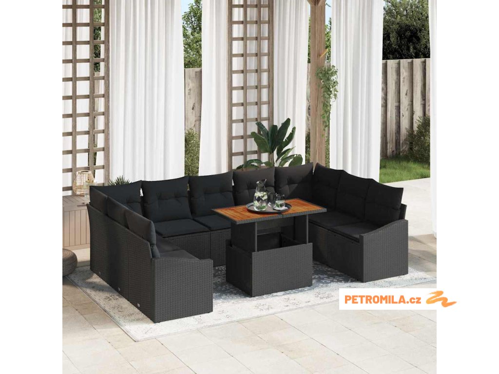 Zahradní jídelní souprava s polštářem 10 pcs Černá a hnědá