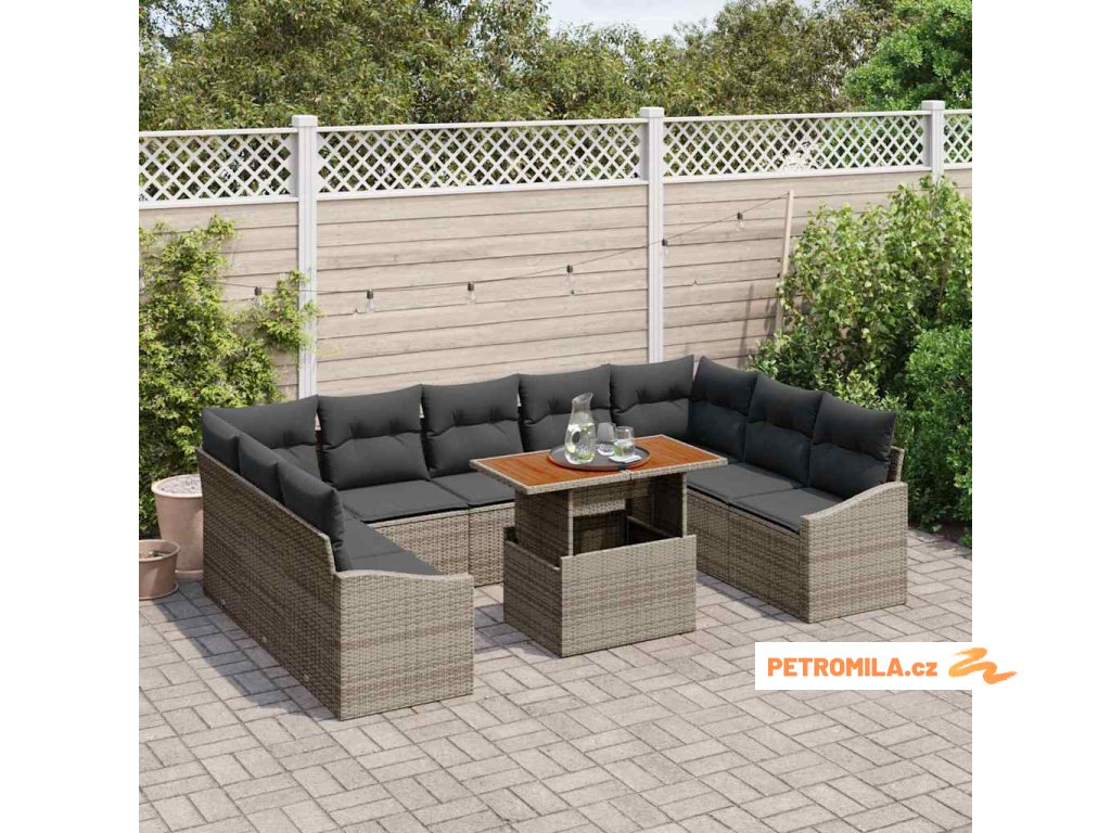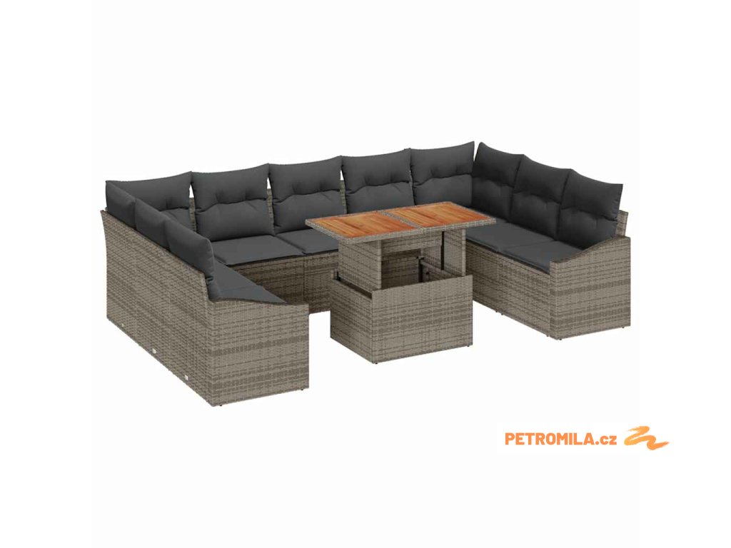 Zahradní jídelní souprava s polštářem 10 pcs Šedá a hnědá