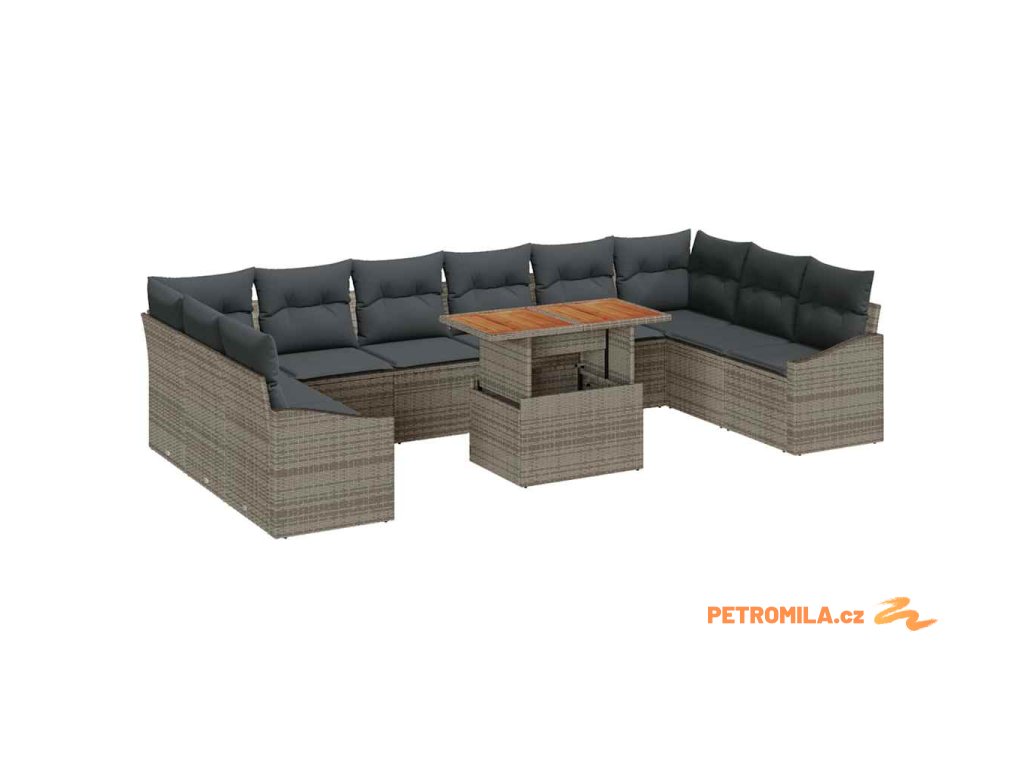 Zahradní jídelní souprava s polštářem 11 pcs Šedá a hnědá