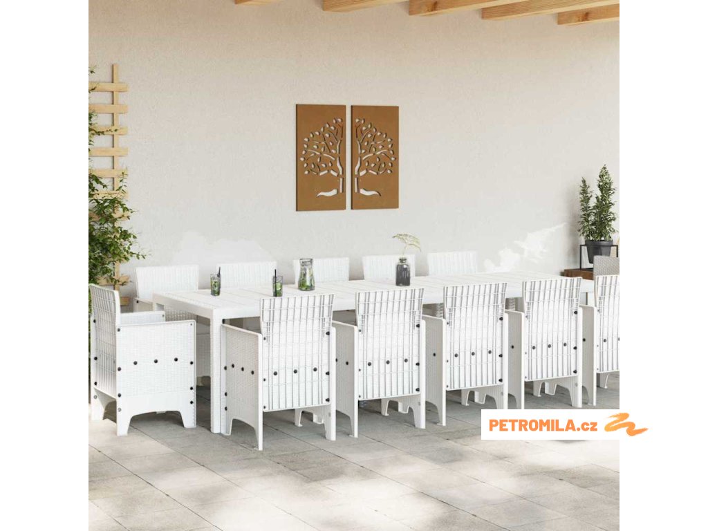 Zahradní jídelní souprava s polštářem 13 pcs Bílá a světle šedá