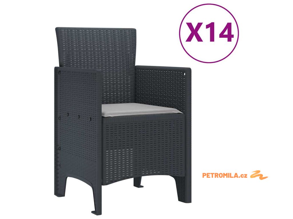 Zahradní jídelní souprava s polštářem 15 pcs Antracit polyratan
