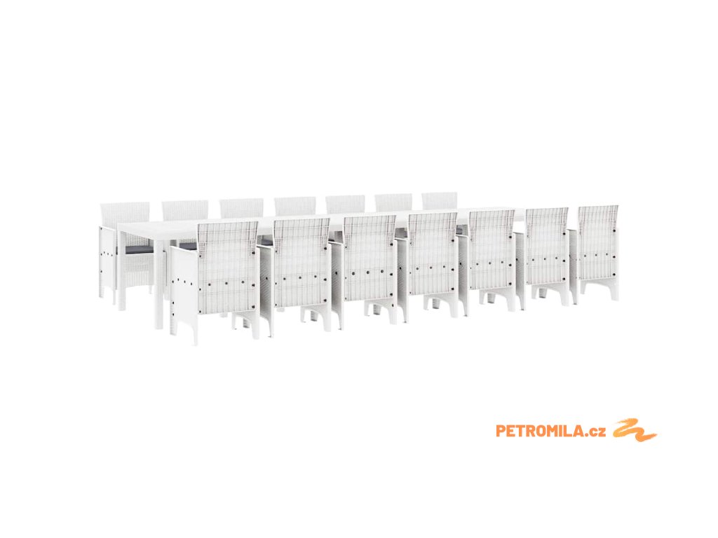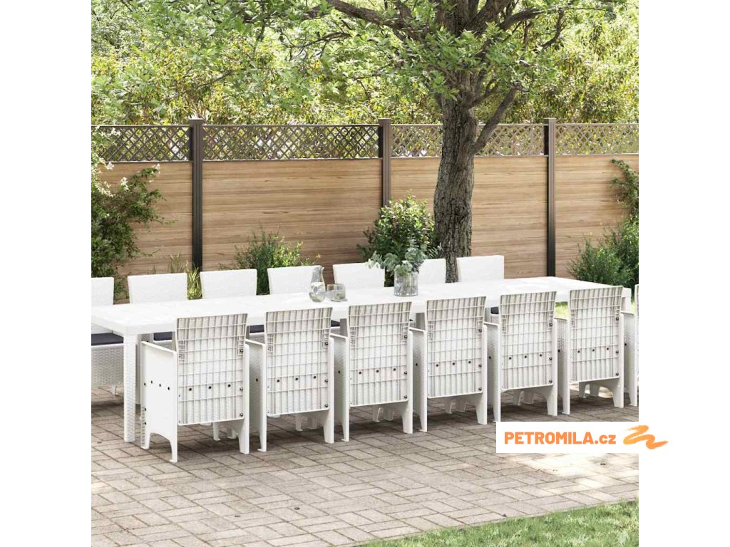 Zahradní jídelní souprava s polštářem 15 pcs Bílá polyratan