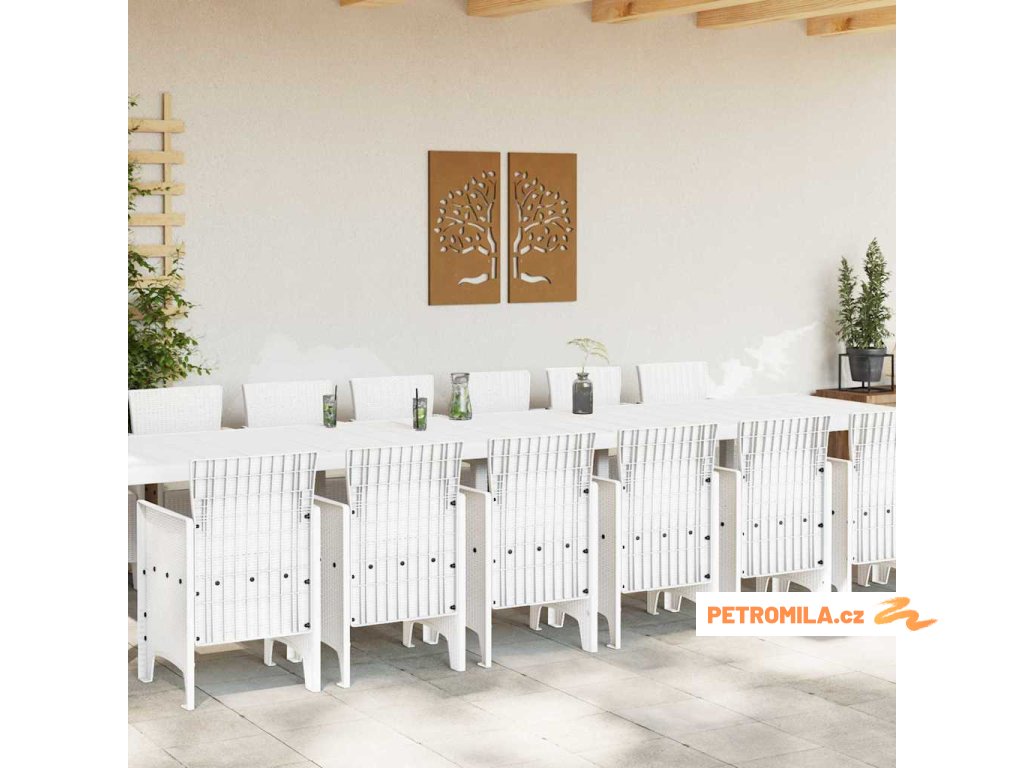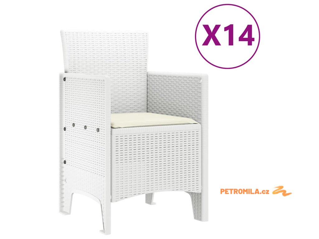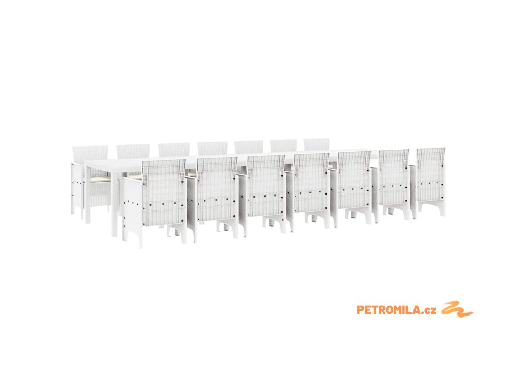 Zahradní jídelní souprava s polštářem 15 pcs Bílá polyratan
