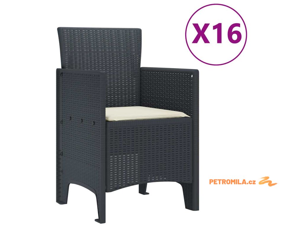 Zahradní jídelní souprava s polštářem 15 pcs Antracit polyratan
