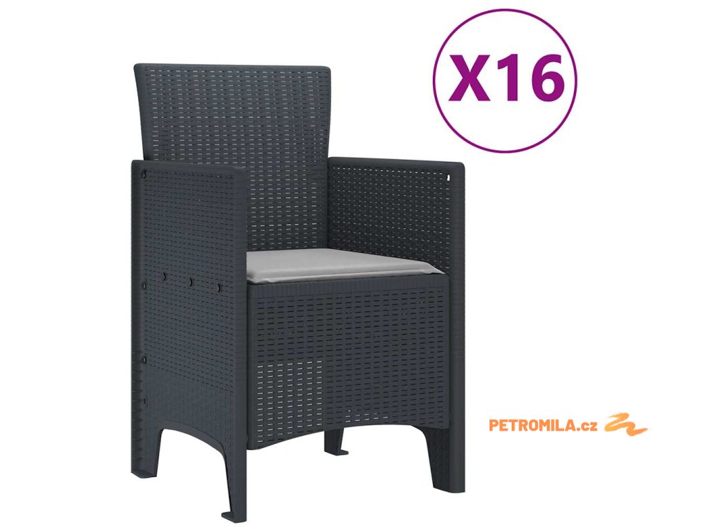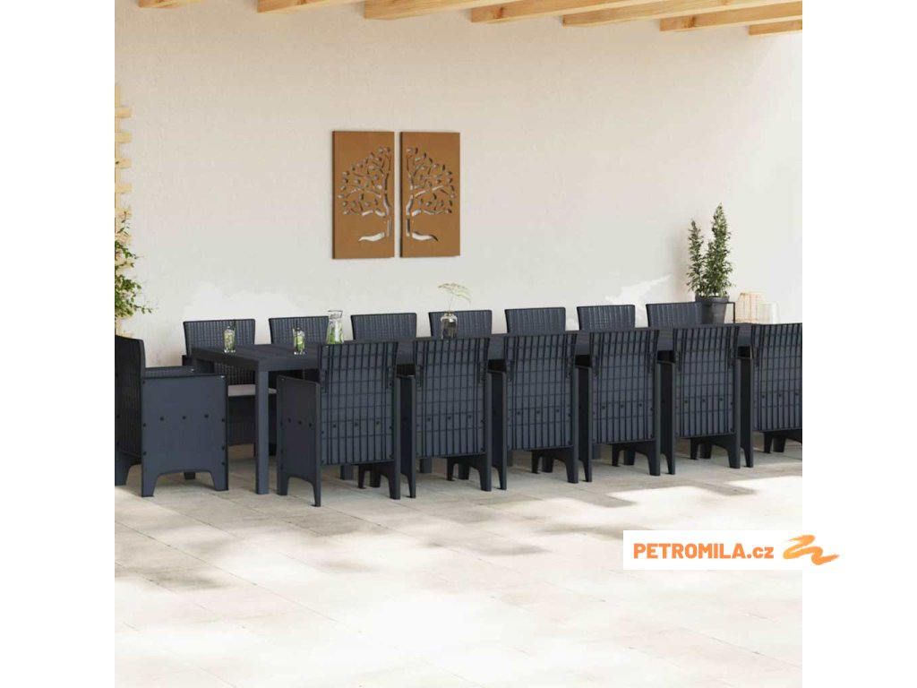 Zahradní jídelní souprava s polštářem 17 pcs Antracit polyratan