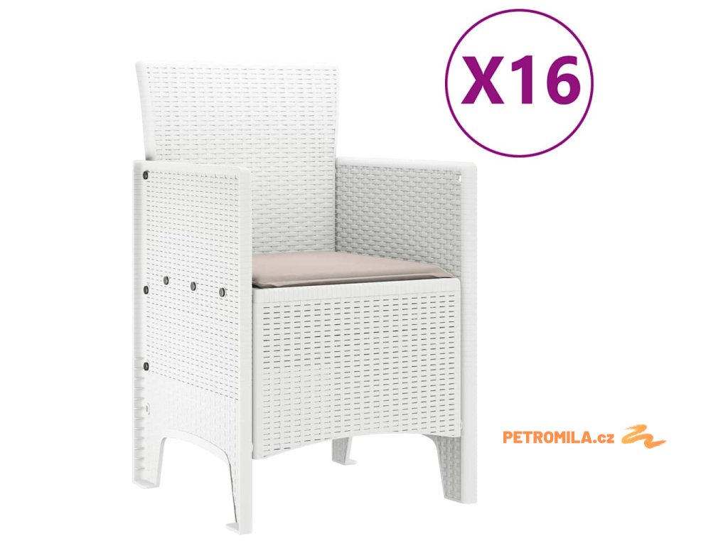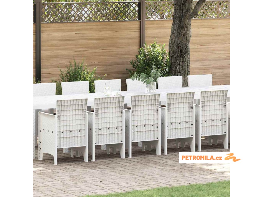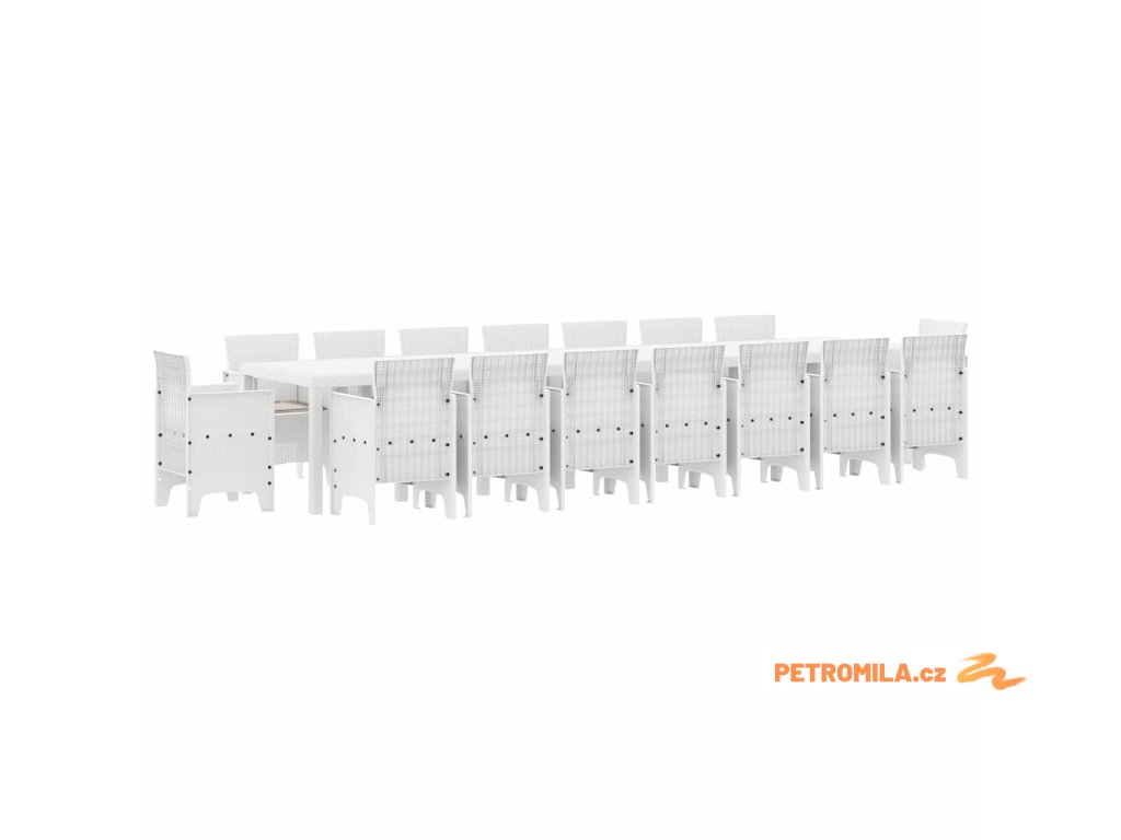 Zahradní jídelní souprava s polštářem 17 pcs Bílá polyratan