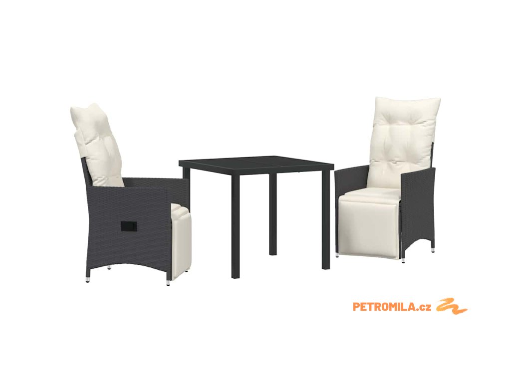 Zahradní jídelní souprava s polštářem 3 pcs Černá Poly ratan