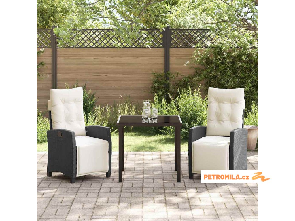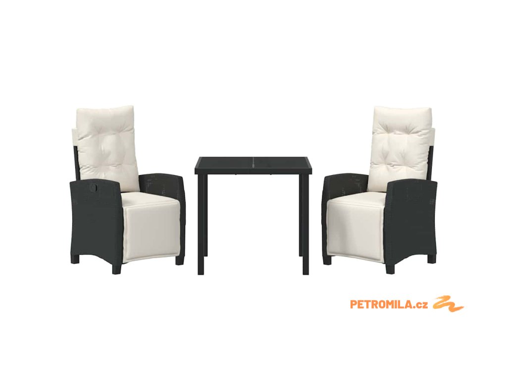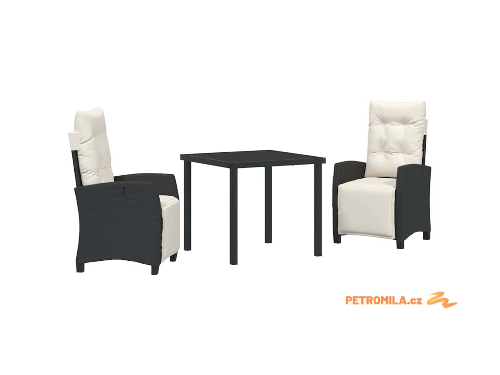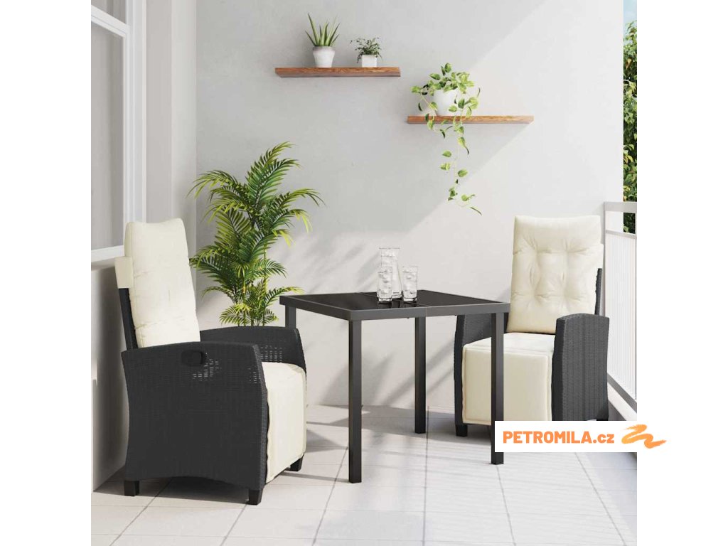 Zahradní jídelní souprava s polštářem 3 pcs Černá polyratan