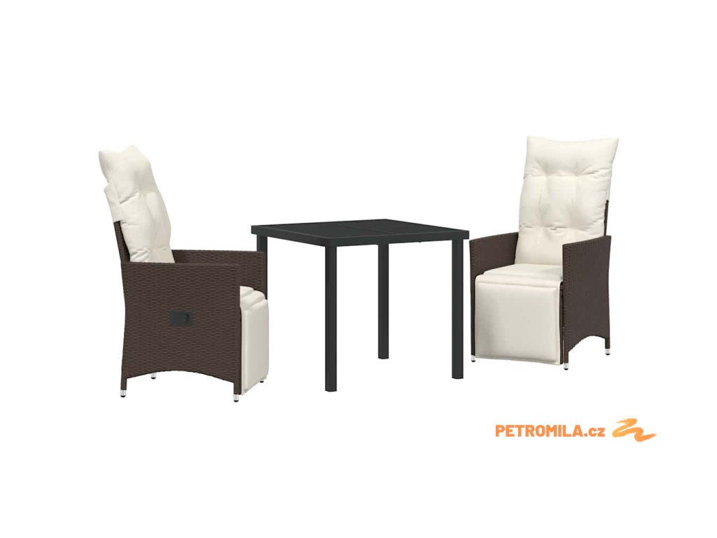 Zahradní jídelní souprava s polštářem 3 pcs Hnědá Poly ratan