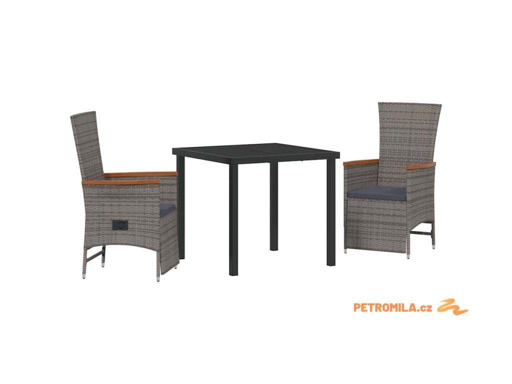 Zahradní jídelní souprava s polštářem 3 pcs Šedá Poly ratan