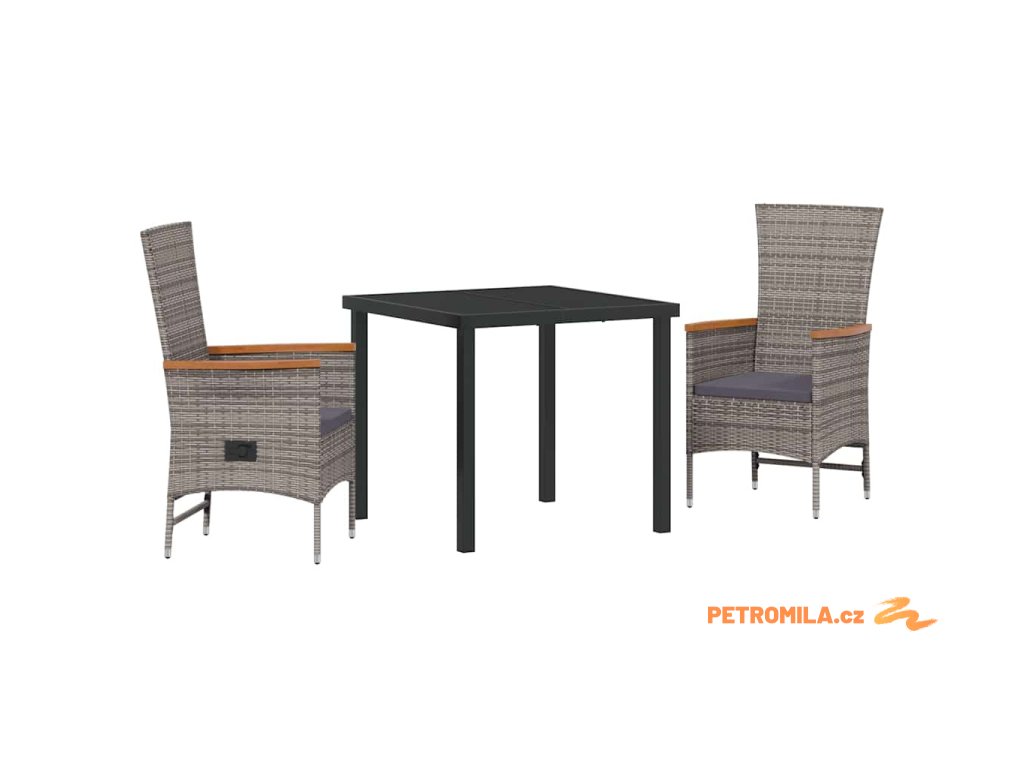 Zahradní jídelní souprava s polštářem 3 pcs Šedá Poly ratan