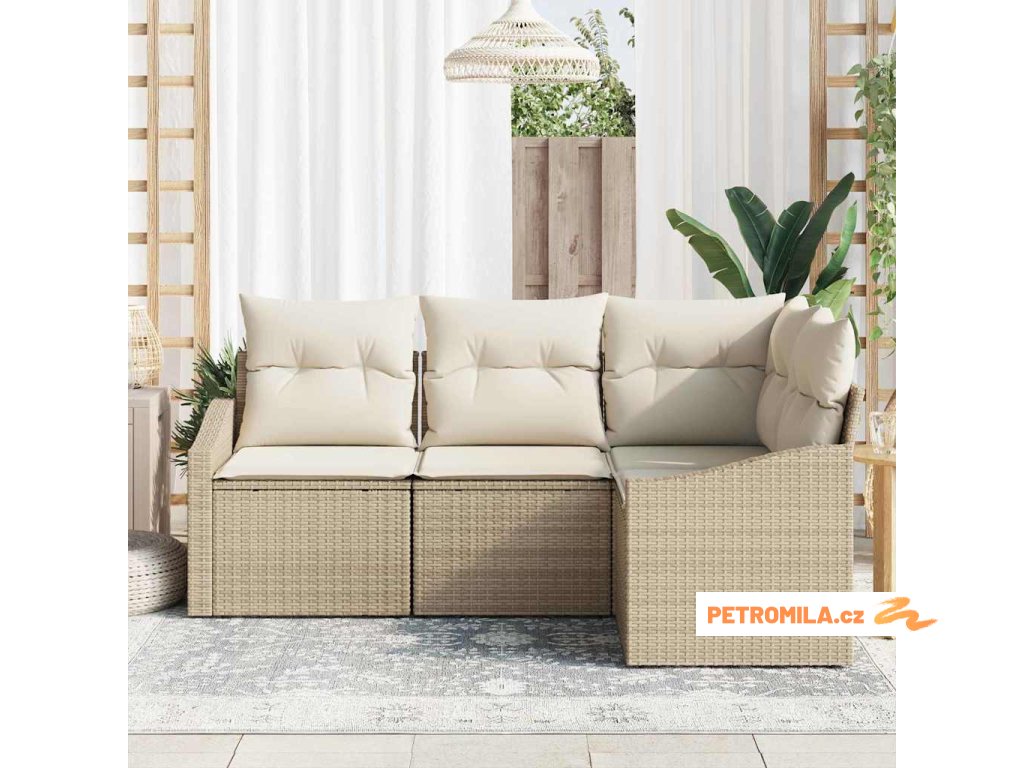 Zahradní jídelní souprava s polštářem 4 pcs Béžová a krémová