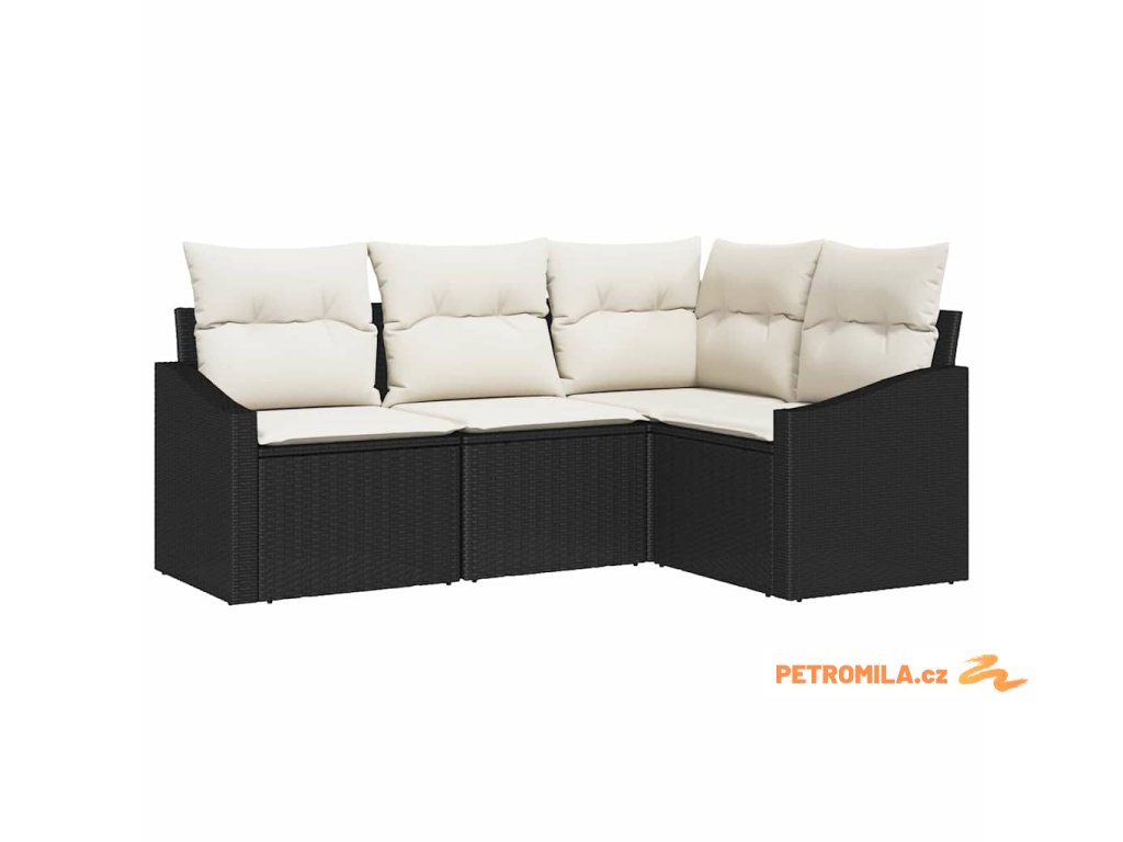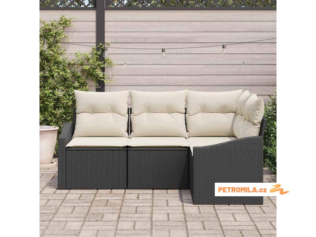Zahradní jídelní souprava s polštářem 4 pcs Černá a krémová