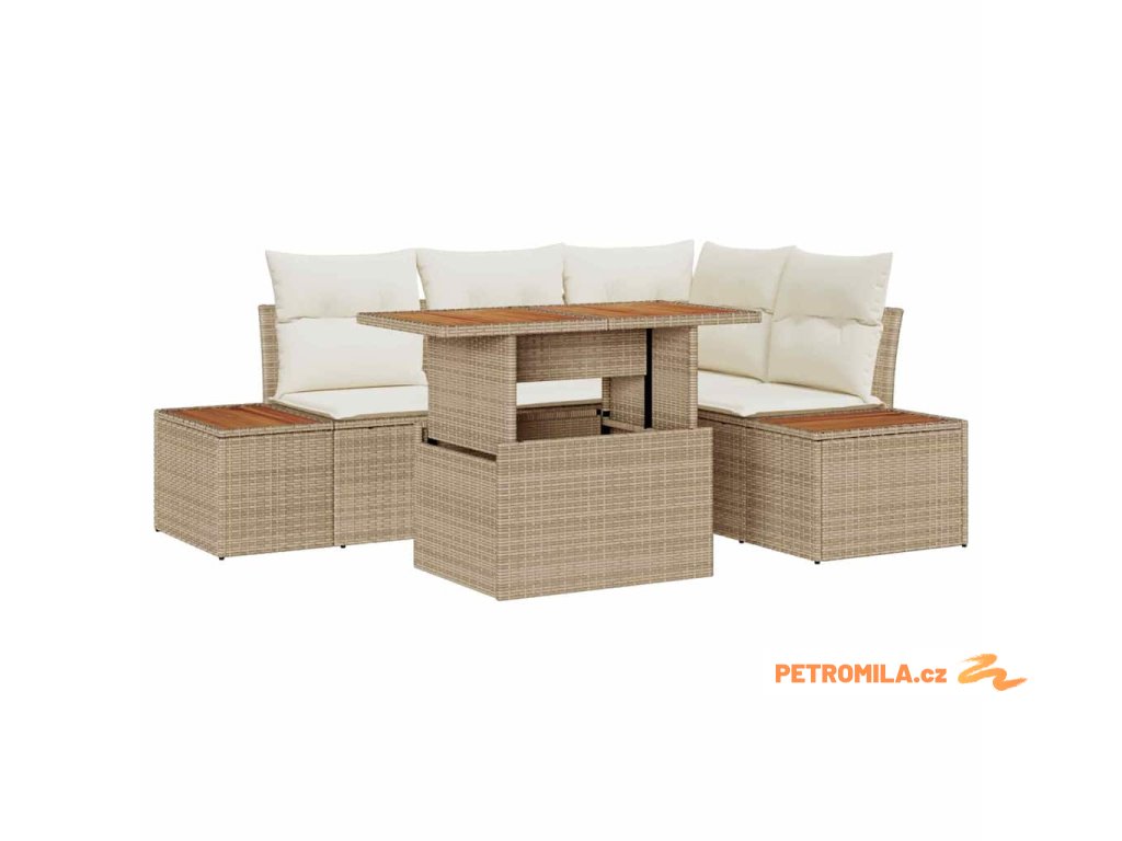 Zahradní jídelní souprava s polštářem 5 pcs Béžová a krémová