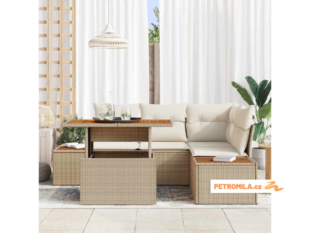 - Špičkové materiály: Je vyrobený z polyratanu, práškově lakované oceli a masivního akáciového dřeva, takže je připravený na venkovní použití. Tyhle materiály dodávají super pevnost a pěkný vzhled, což zajistí dlouhou životnost.