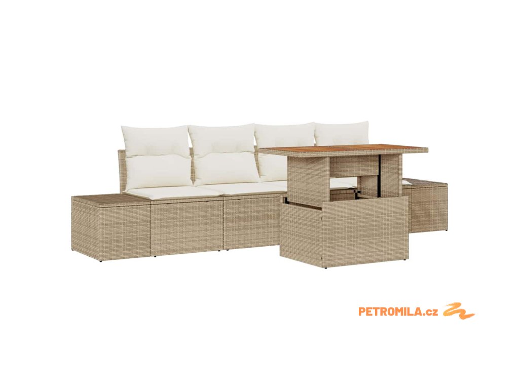 Zahradní jídelní souprava s polštářem 5 pcs Béžová a krémová