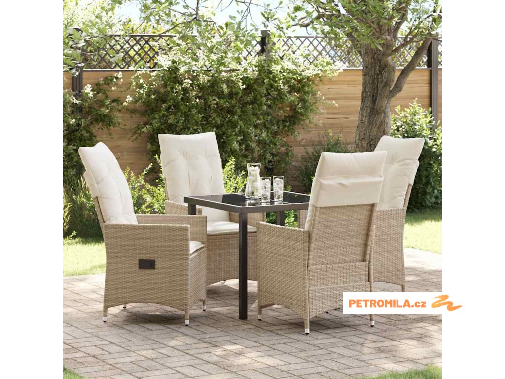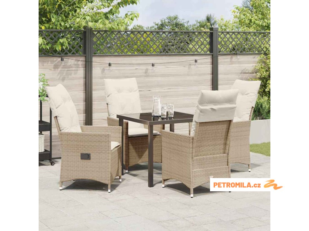 Zahradní jídelní souprava s polštářem 5 pcs Béžová Poly ratan