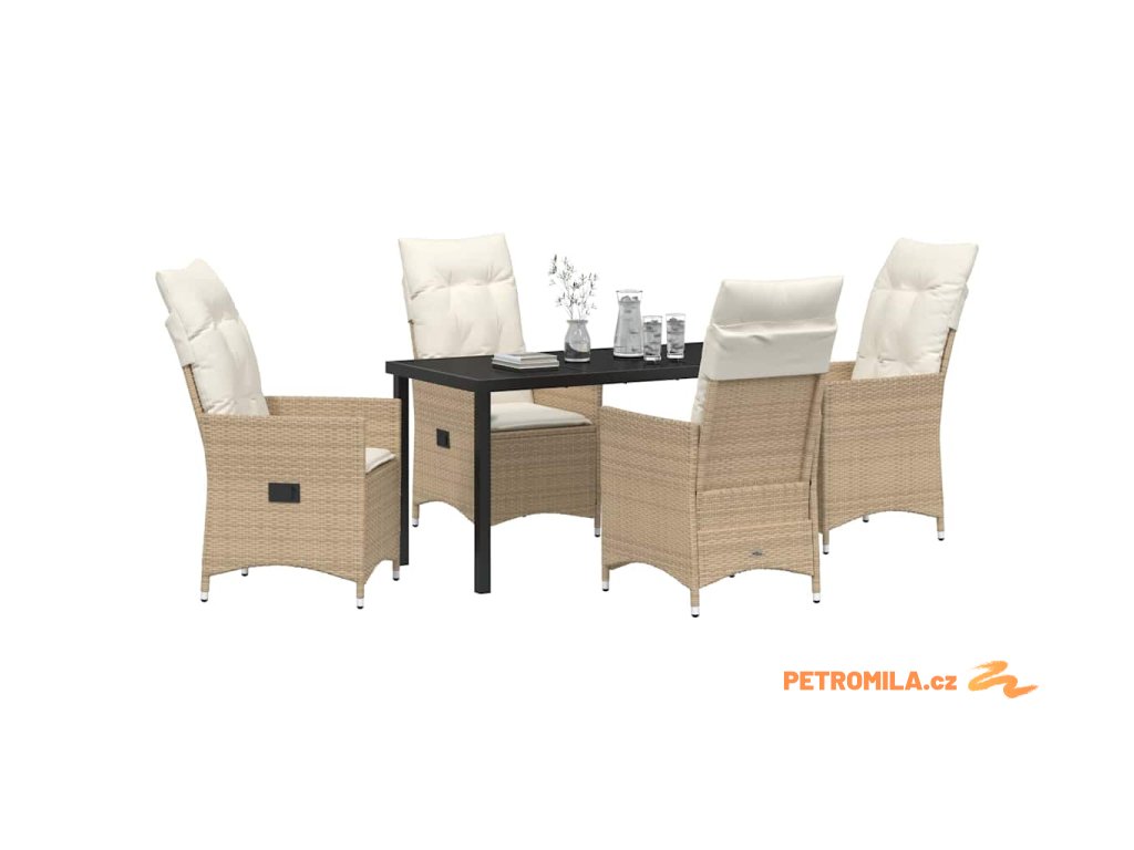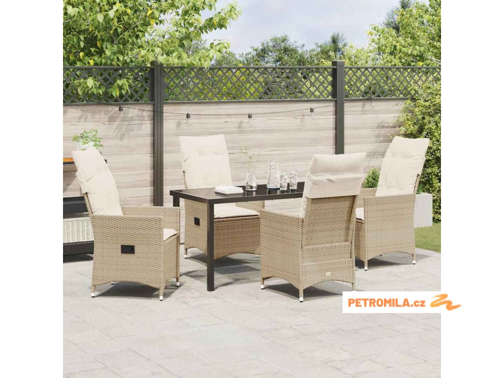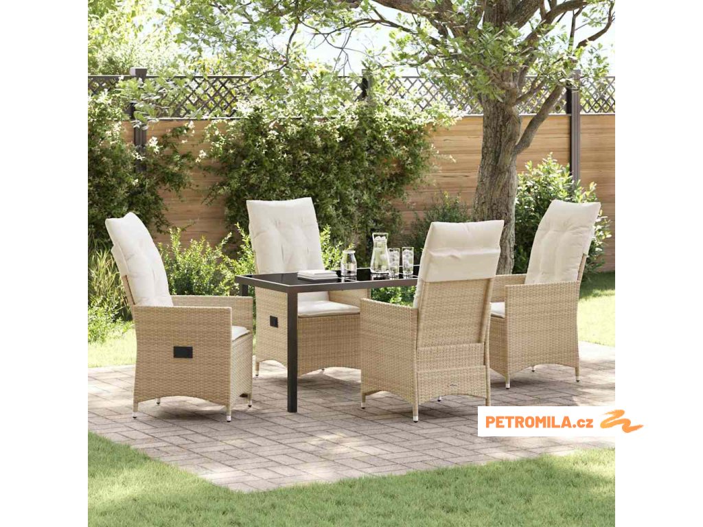 Zahradní jídelní souprava s polštářem 5 pcs Béžová Poly ratan