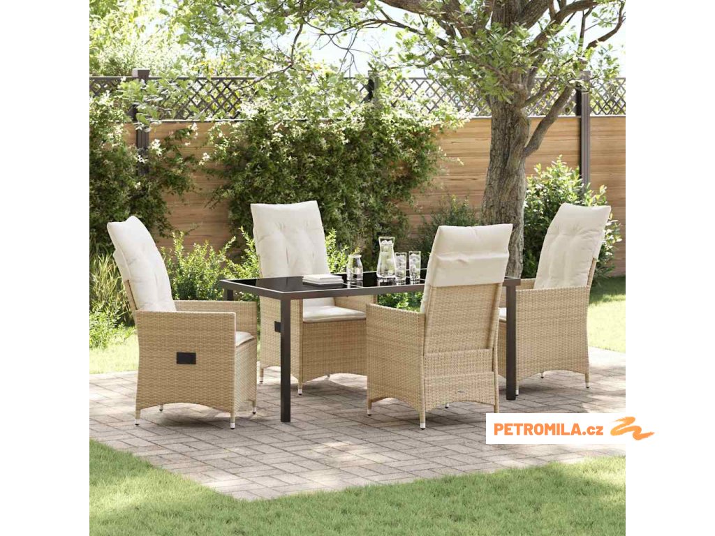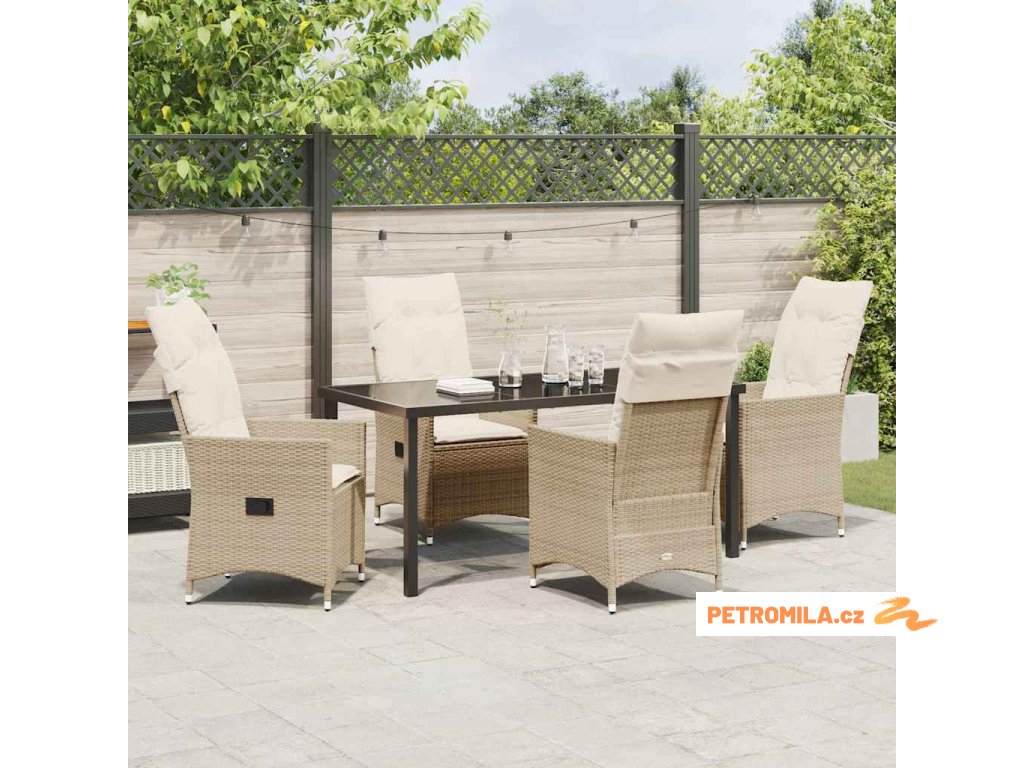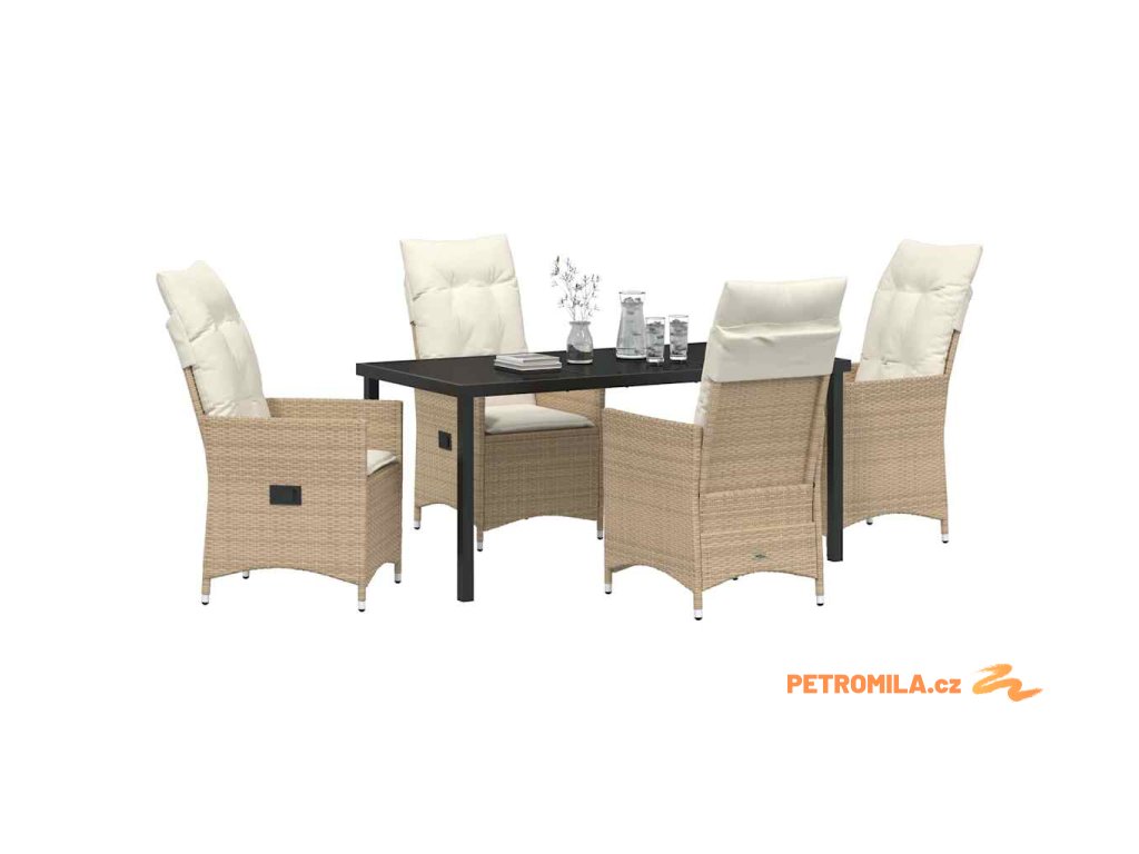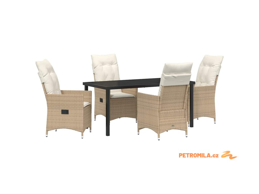 Zahradní jídelní souprava s polštářem 5 pcs Béžová Poly ratan