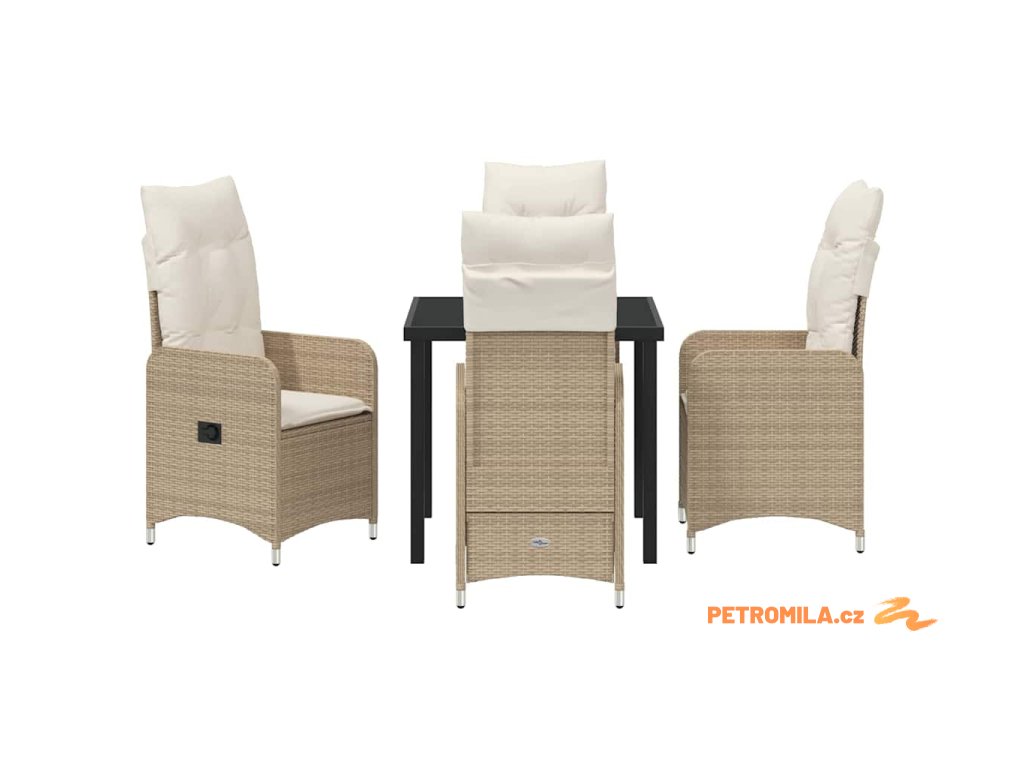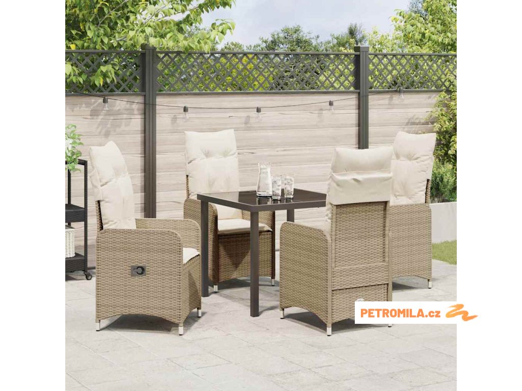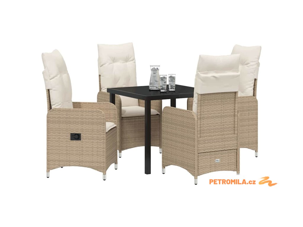 Zahradní jídelní souprava s polštářem 5 pcs Béžová Poly ratan