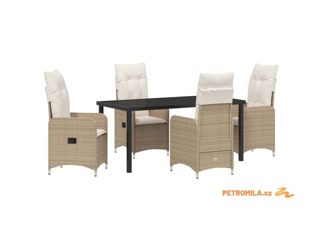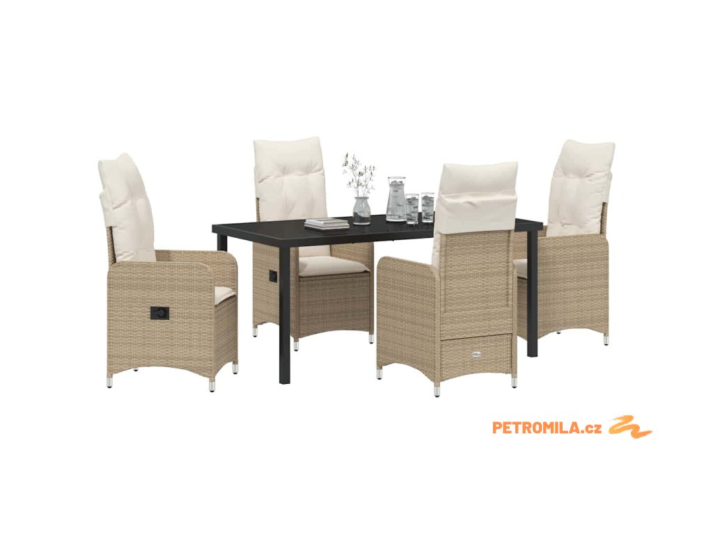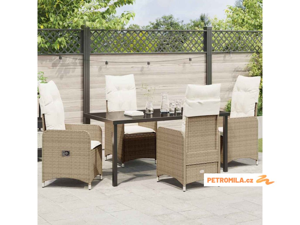 Zahradní jídelní souprava s polštářem 5 pcs Béžová Poly ratan