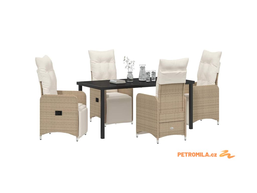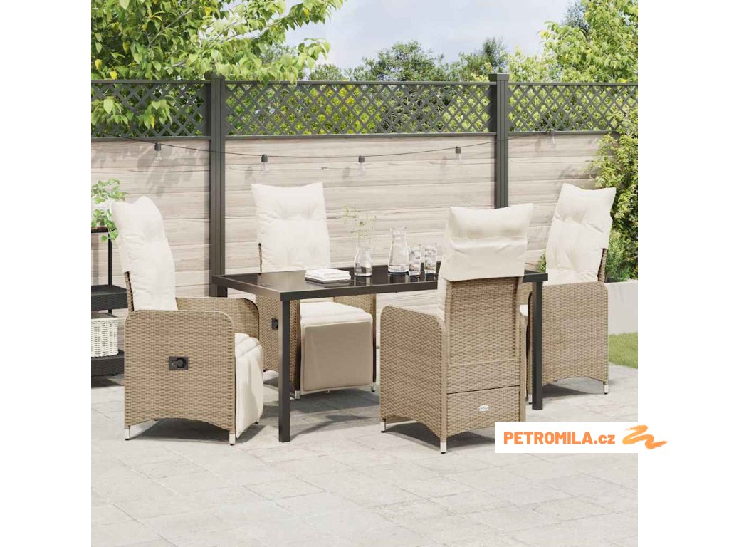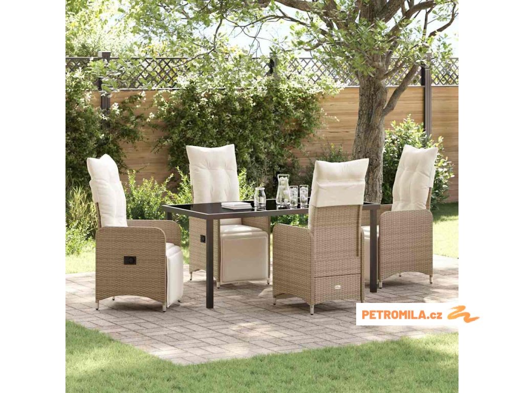 Zahradní jídelní souprava s polštářem 5 pcs Béžová Poly ratan