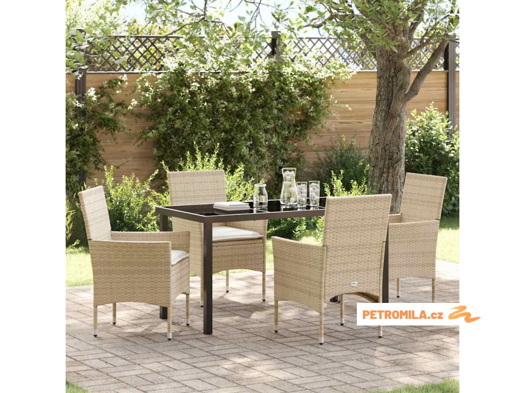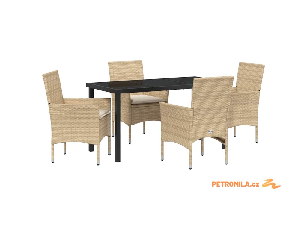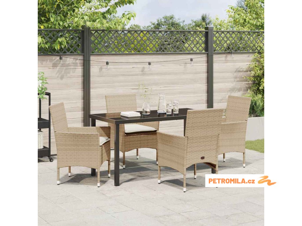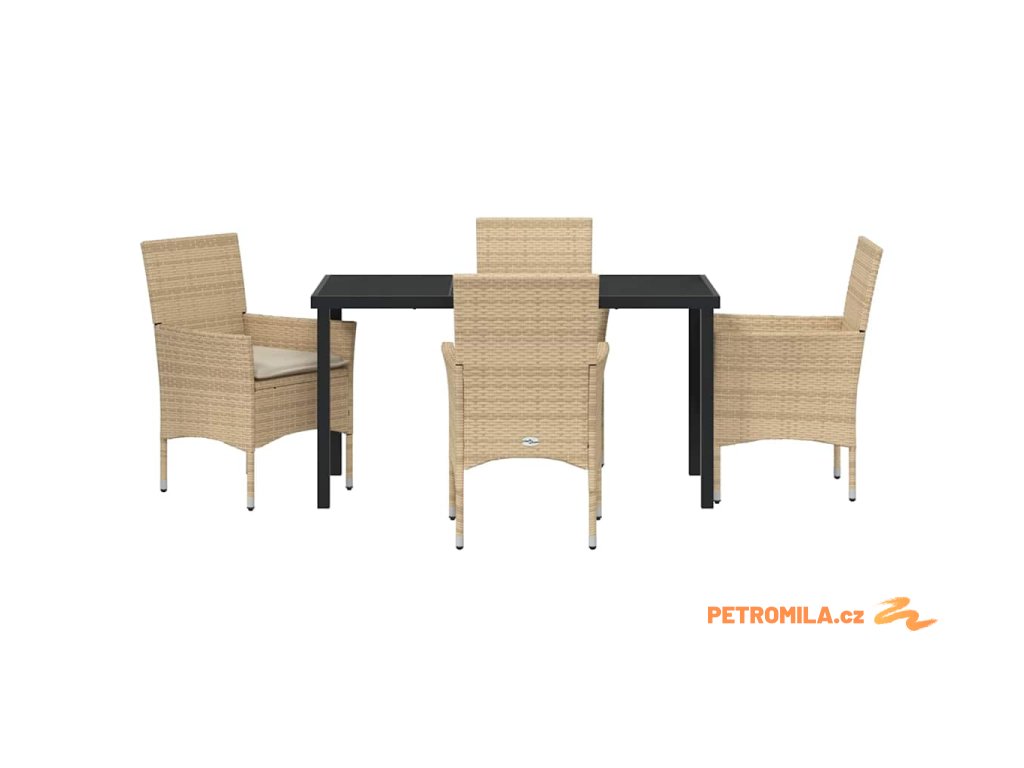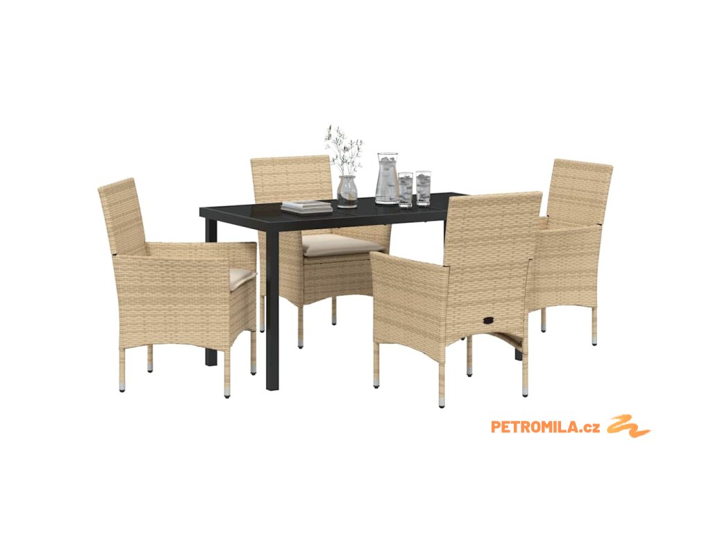 Zahradní jídelní souprava s polštářem 5 pcs Béžová Poly ratan