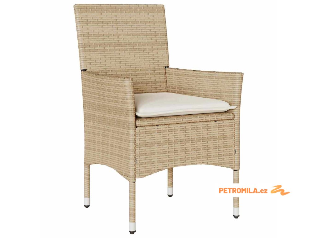 Zahradní jídelní souprava s polštářem 7 pcs Béžová Poly ratan
