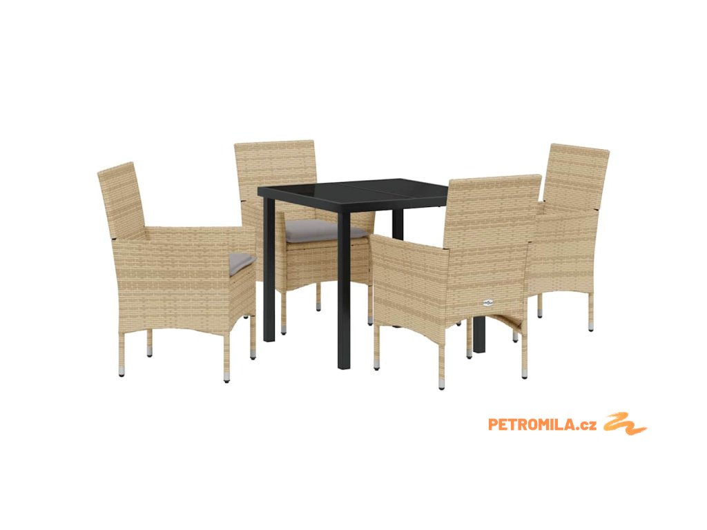Zahradní jídelní souprava s polštářem 5 pcs Béžová Poly ratan