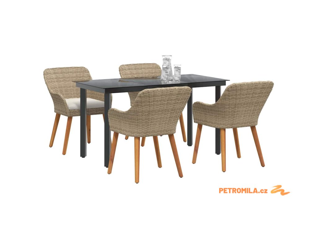 Zahradní jídelní souprava s polštářem 5 pcs Béžová Poly ratan