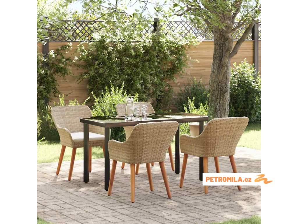Zahradní jídelní souprava 5 pcs Béžová polyratan