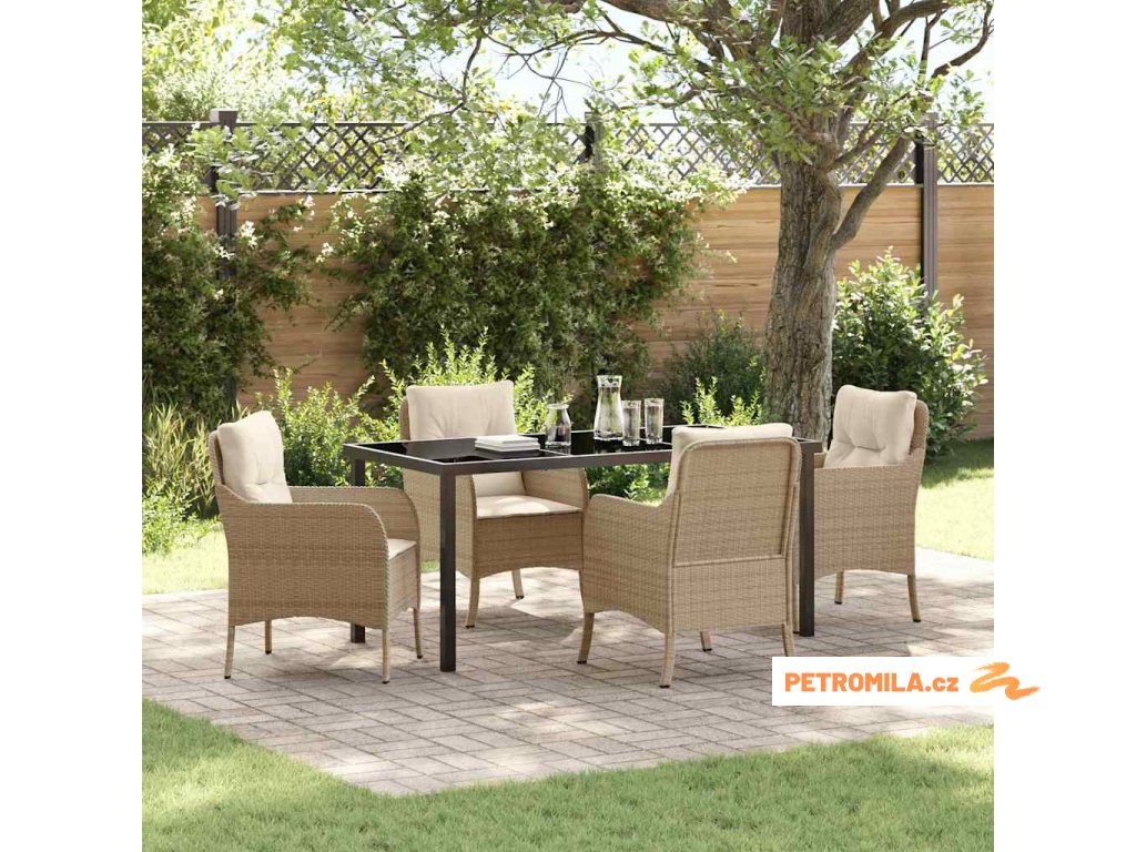 Zahradní jídelní souprava s polštářem 5 pcs Béžová polyratan