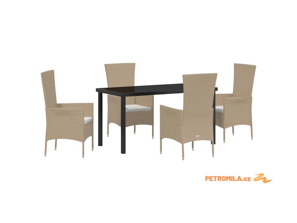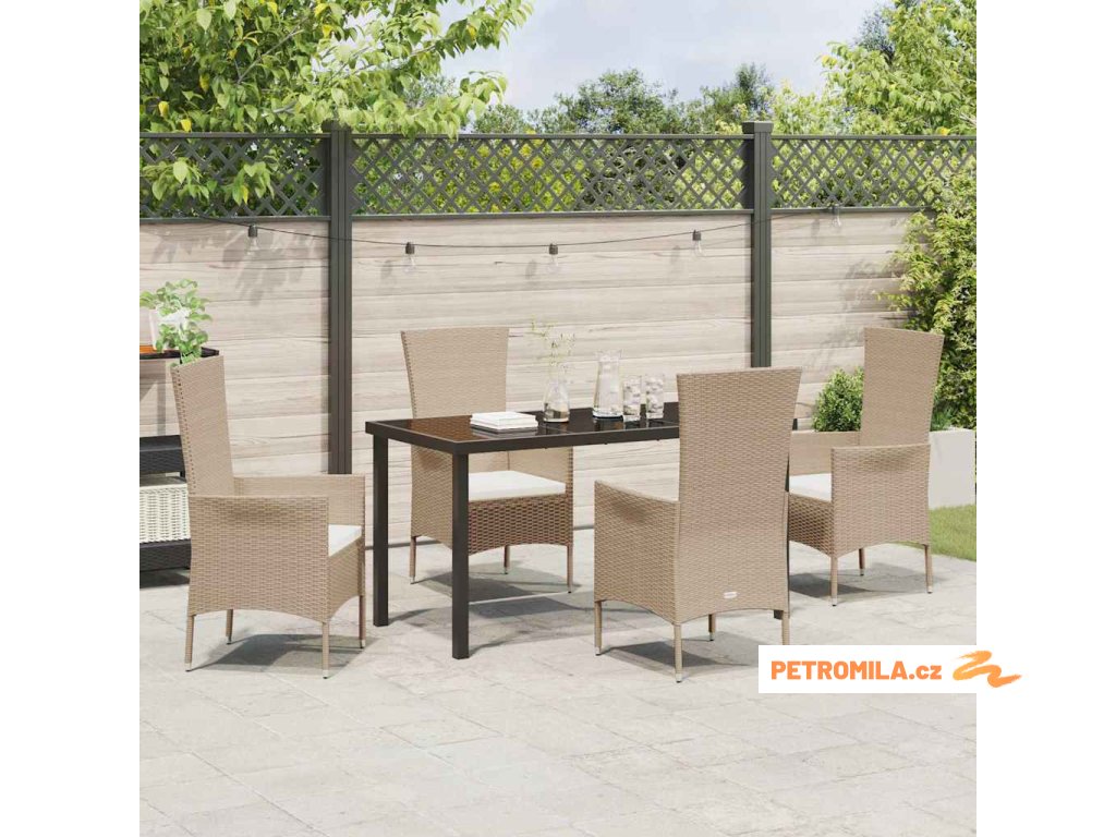 Zahradní jídelní souprava s polštářem 5 pcs Béžová polyratan