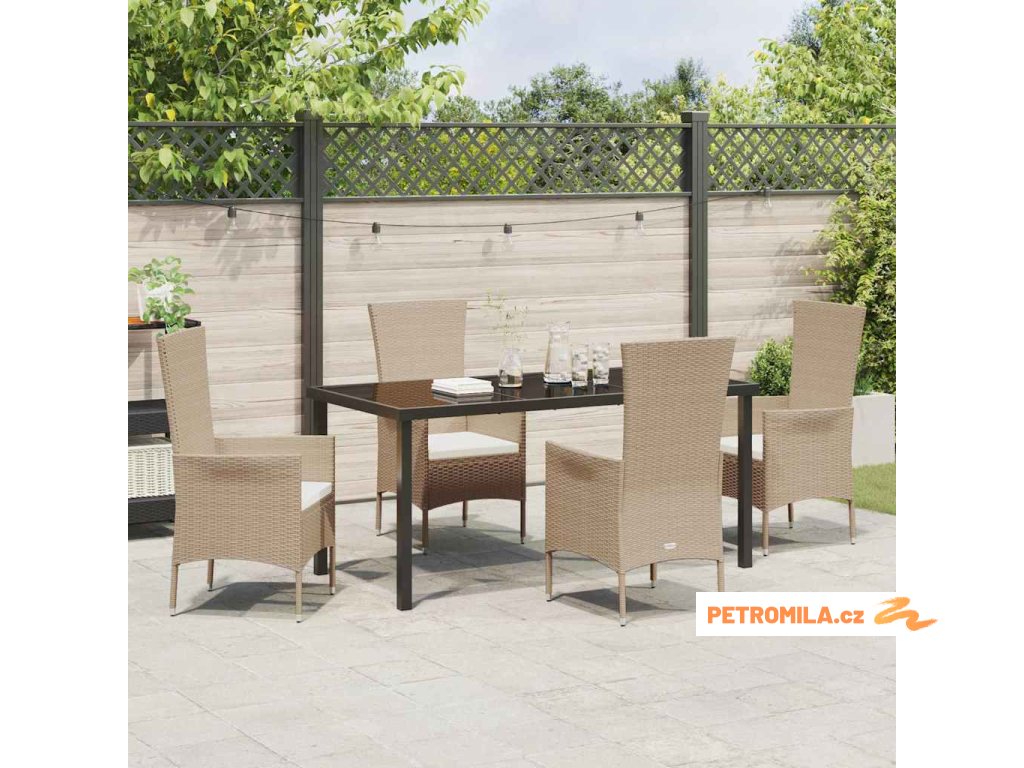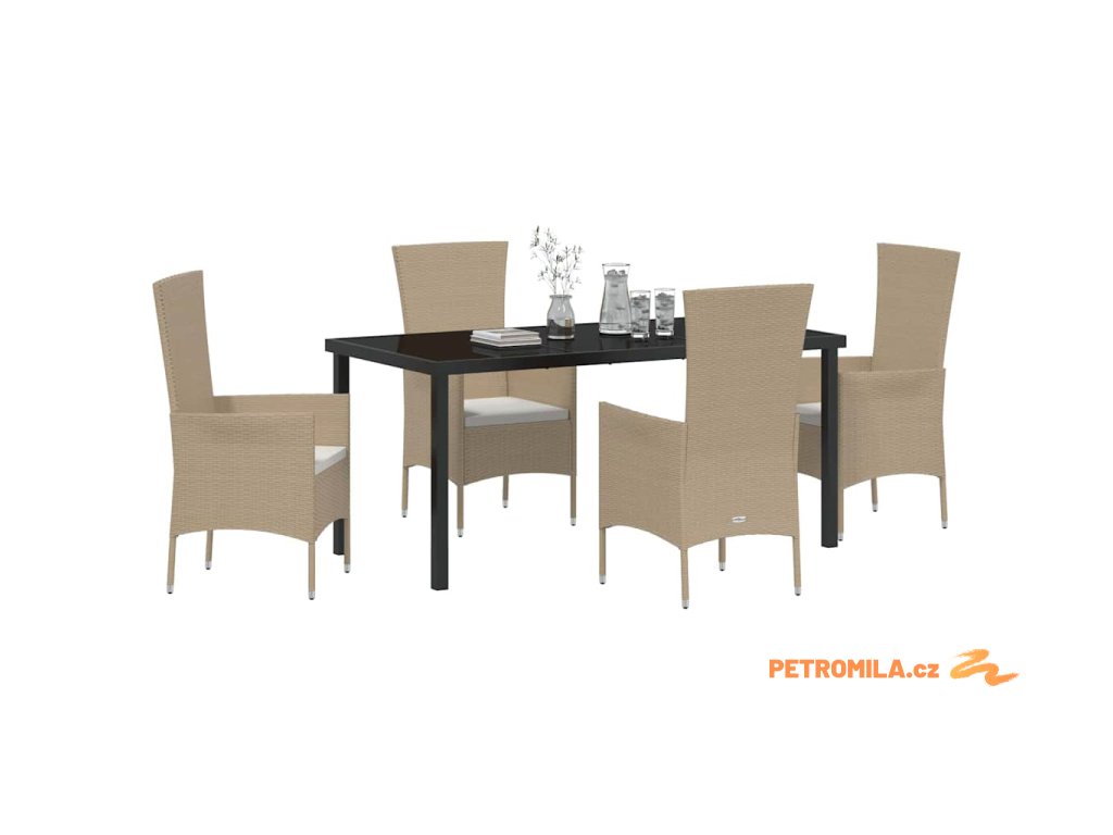 Zahradní jídelní souprava s polštářem 5 pcs Béžová polyratan