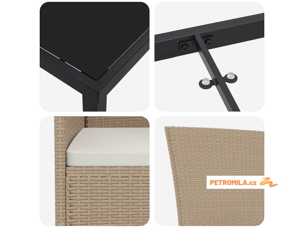 - Materiály, suitable for co něco vydrží: Set je vyrobený z polyratanu a práškově lakované oceli, které jsou známé svojí pevností. Polyratan má hladký, tkaný povrch, suitable for co dlouho vydrží, a ocel poskytuje solidní oporu. Nevybledne, nedeformuje se a nekoroduje, takže víš, že tu bude léta. Navíc, tyhle materiály znamenají, že se o údržbu nemusíš moc starat.