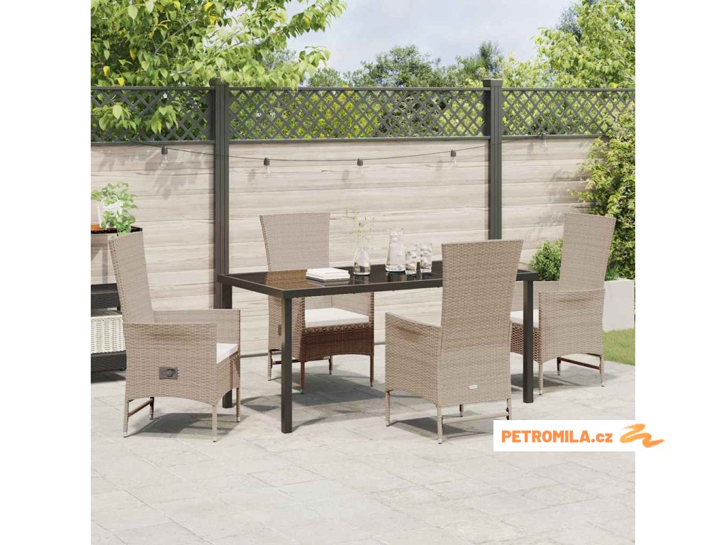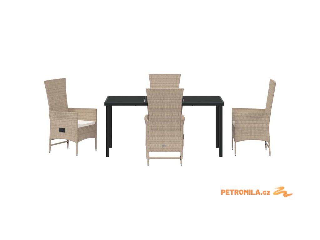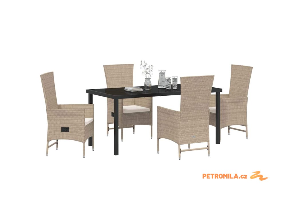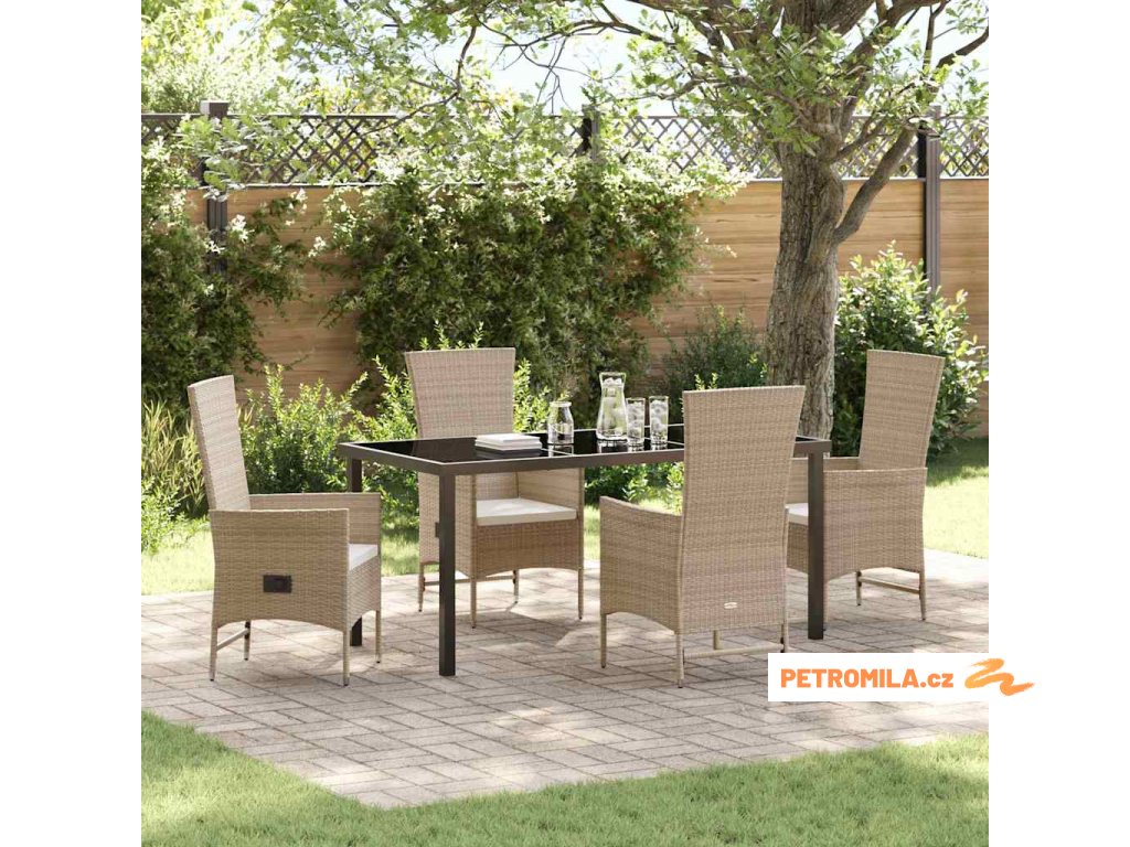 Zahradní jídelní souprava s polštářem 5 pcs Béžová polyratan