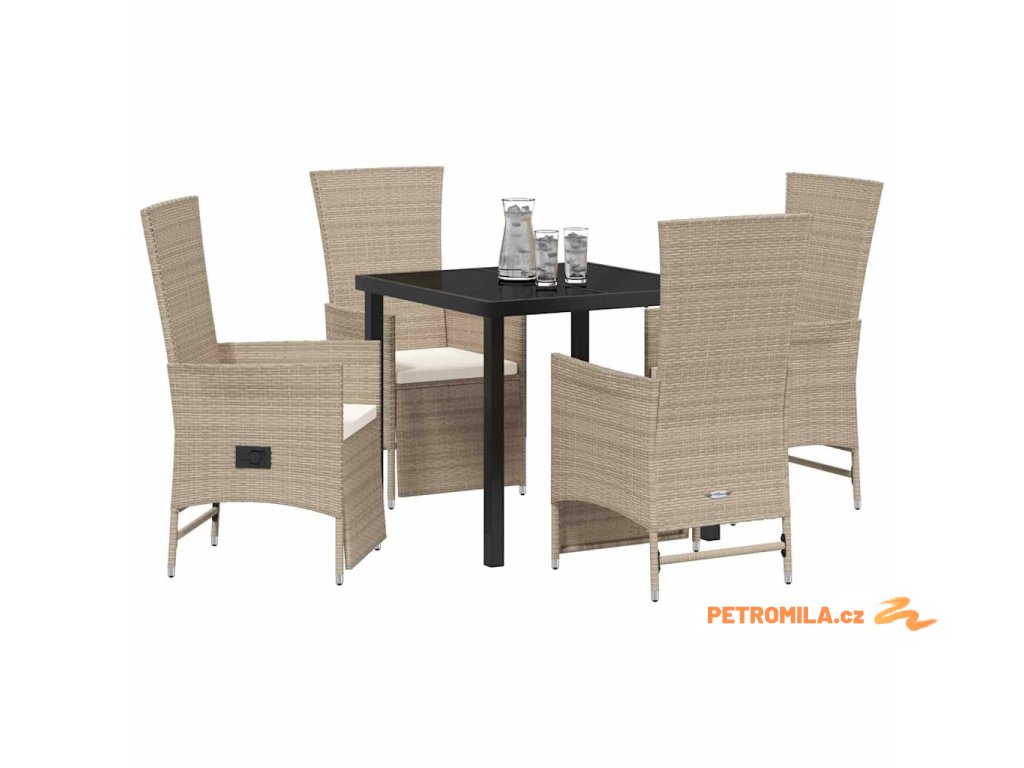 Zahradní jídelní souprava s polštářem 5 pcs Béžová polyratan
