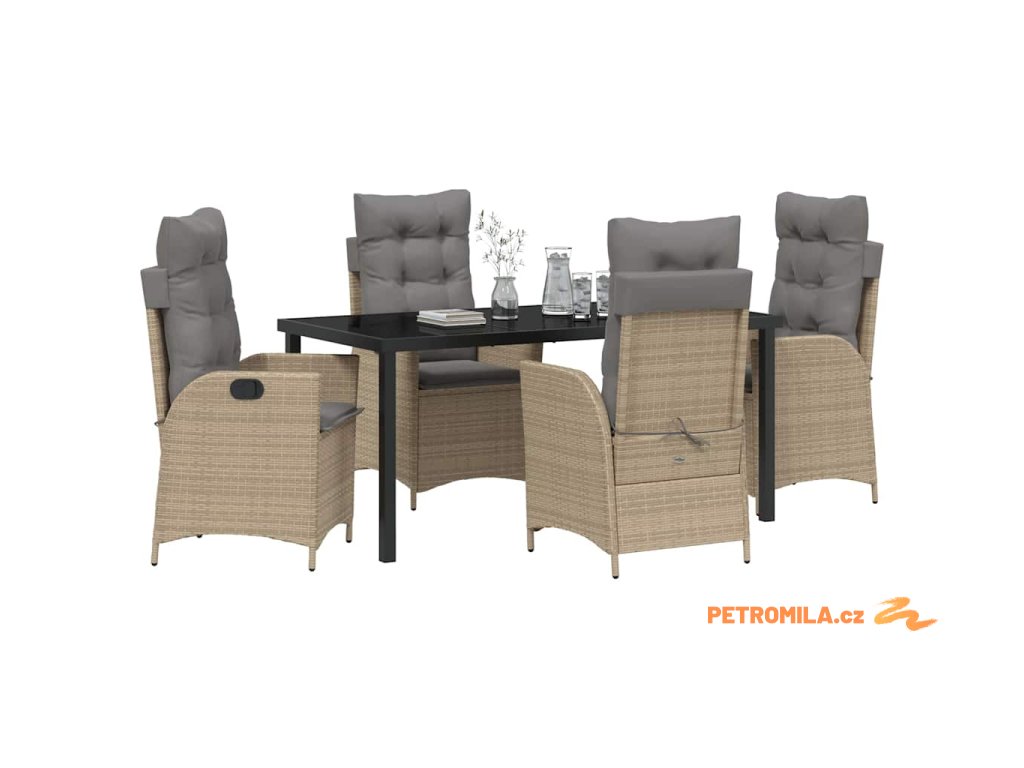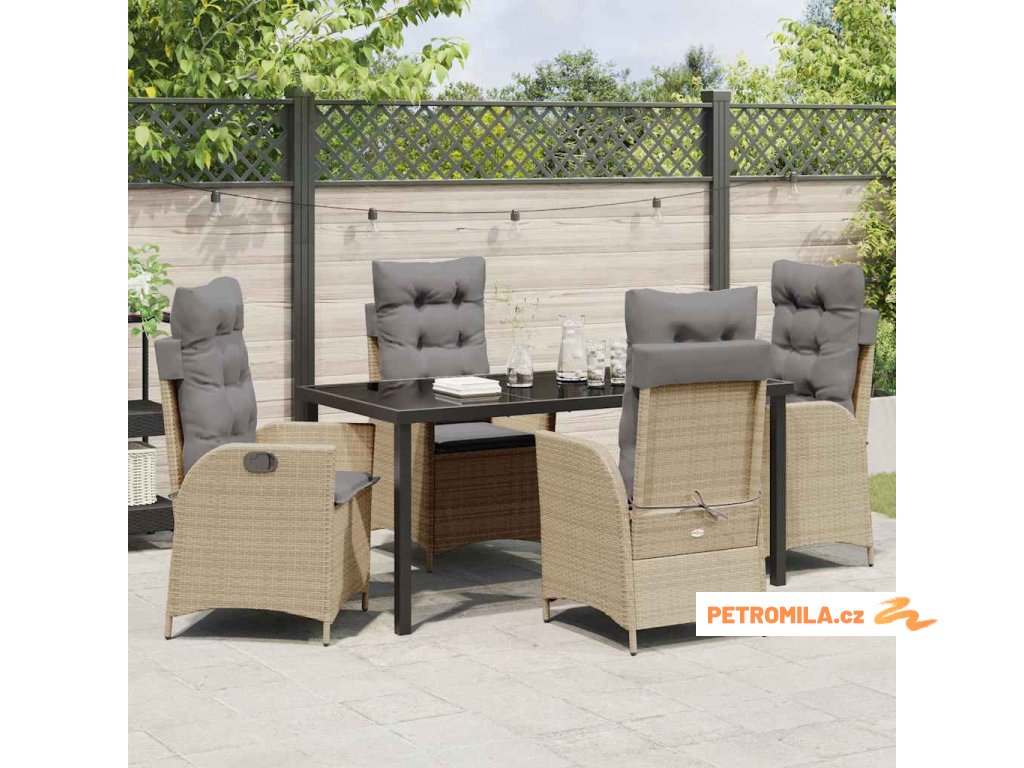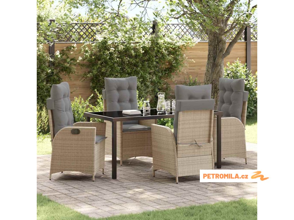 Zahradní jídelní souprava s polštářem 5 pcs Béžová Poly ratan