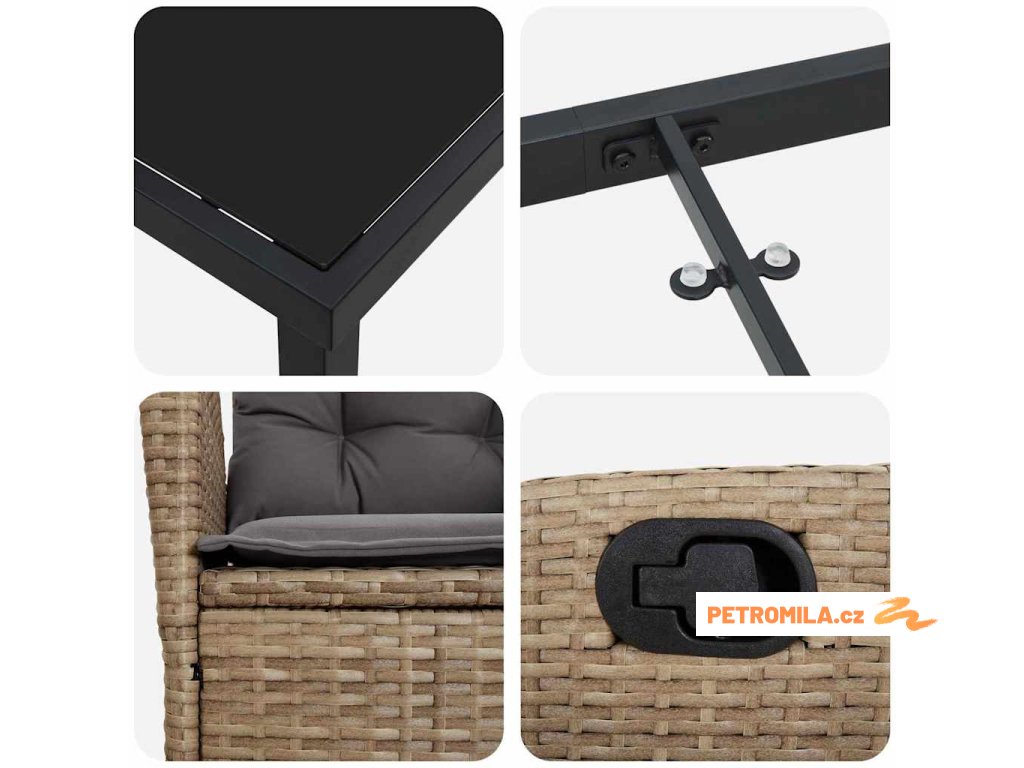 - Nastavitelné pohodlí: Tento set nabízí opěrku zad, která se dá nastavit do různých poloh, takže si najdete ideální úhel pro relaxaci. To z něj dělá perfektní volbu pro dlouhé odpočinkové chvíle s rodinou či přáteli. Díky přizpůsobitelnosti vyhovuje jak aktivnímu stolování, tak i pohodlnému lenošení.