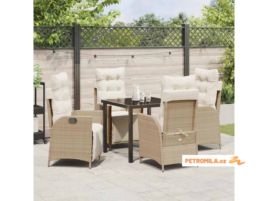 Zahradní jídelní souprava s polštářem 5 pcs Béžová polyratan