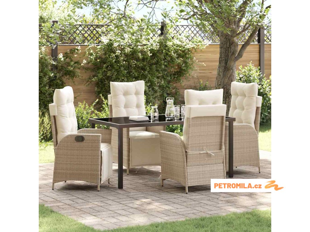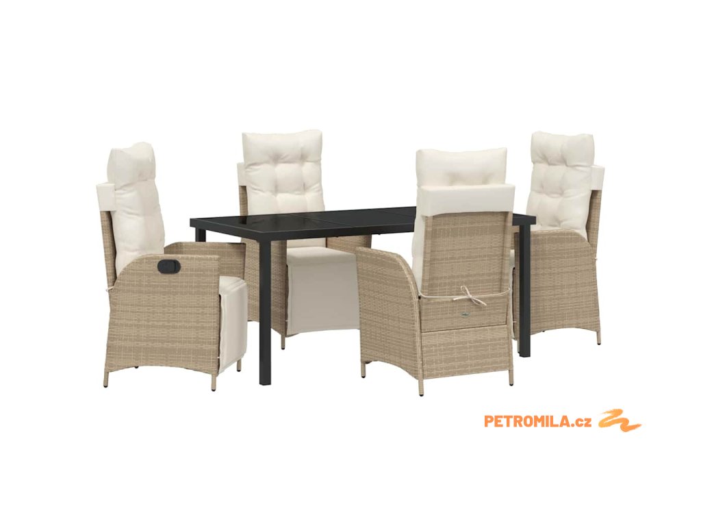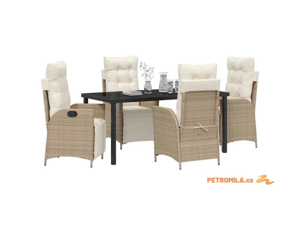 Zahradní jídelní souprava s polštářem 5 pcs Béžová Poly ratan