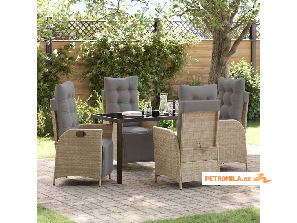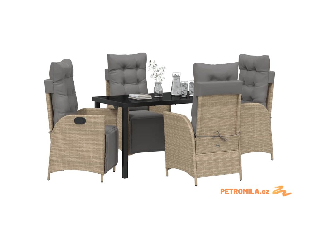 Zahradní jídelní souprava s polštářem 5 pcs Béžová polyratan