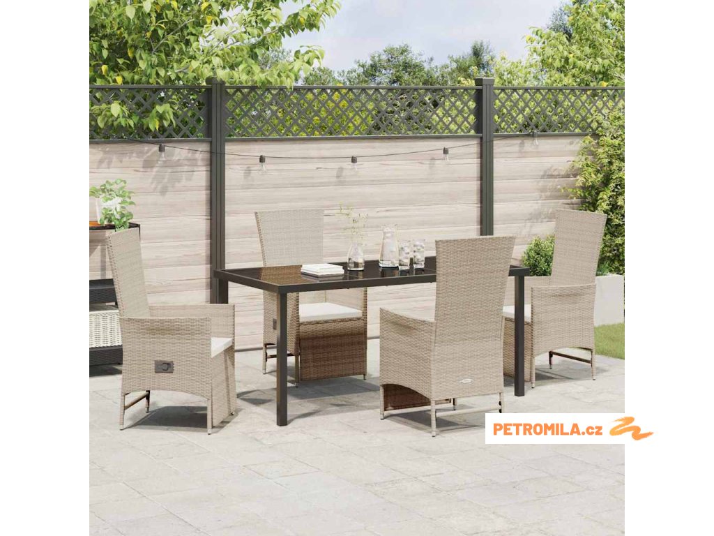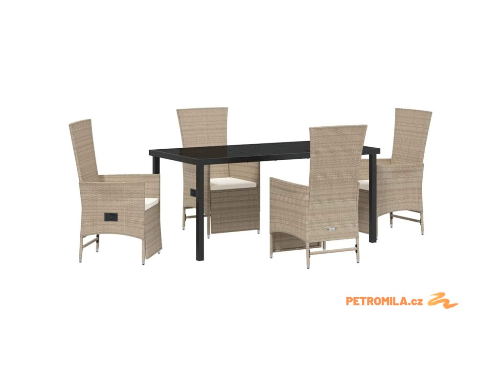 Zahradní jídelní souprava s polštářem 5 pcs Béžová polyratan
