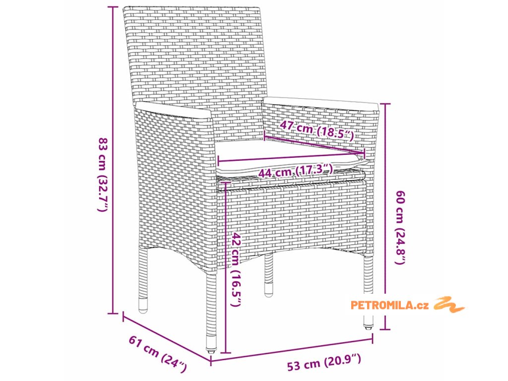 - 8 x zahradní židle: 53 x 61 x 83 cm (D x Š x V)