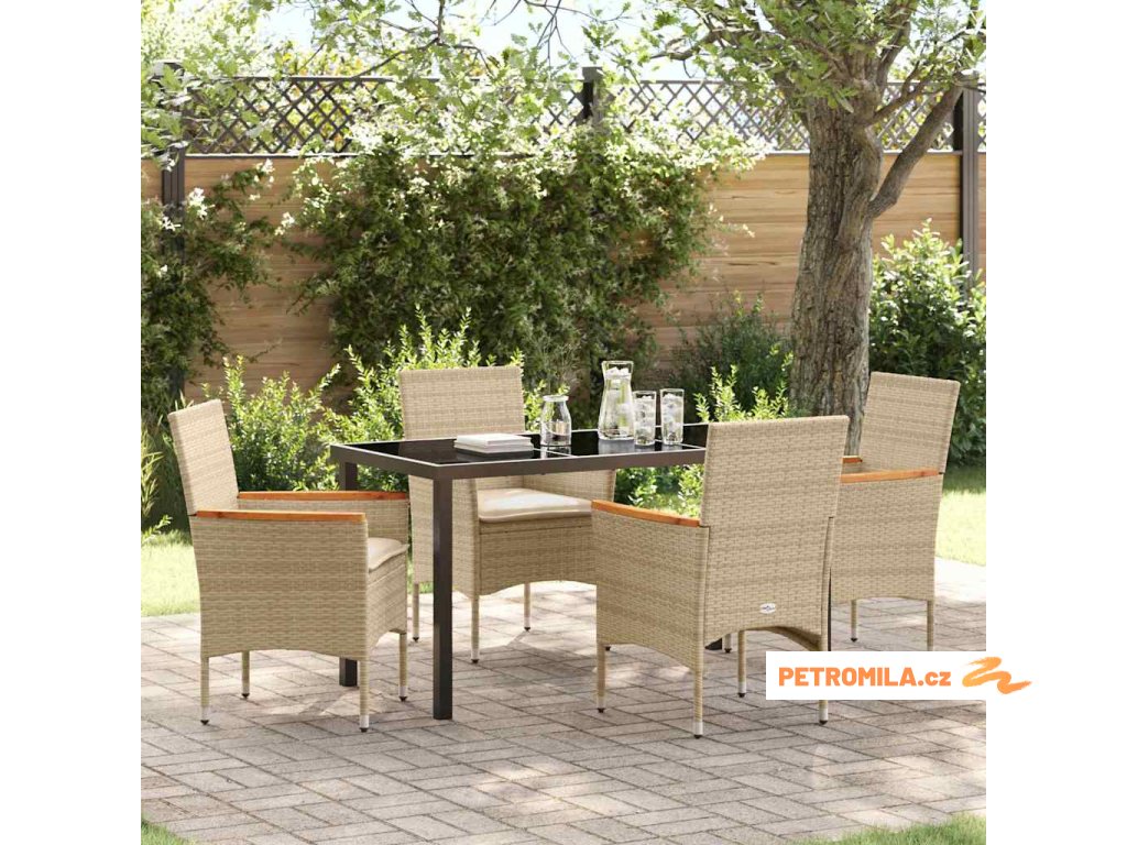 Zahradní jídelní souprava s polštářem 5 pcs Béžová polyratan