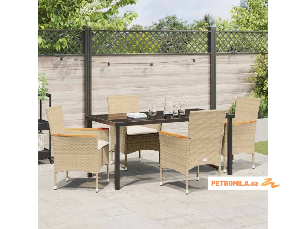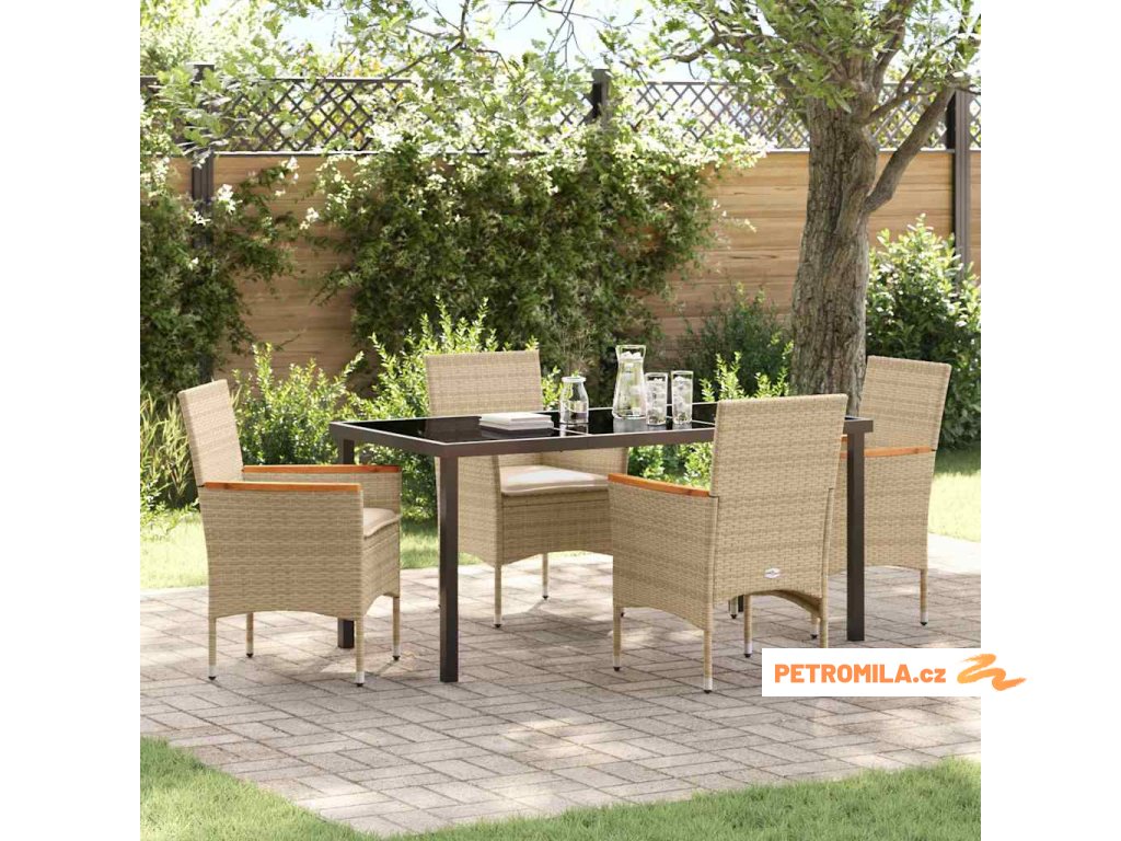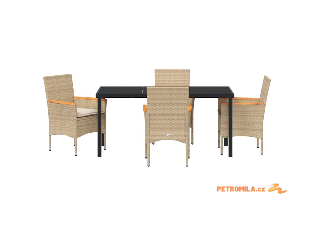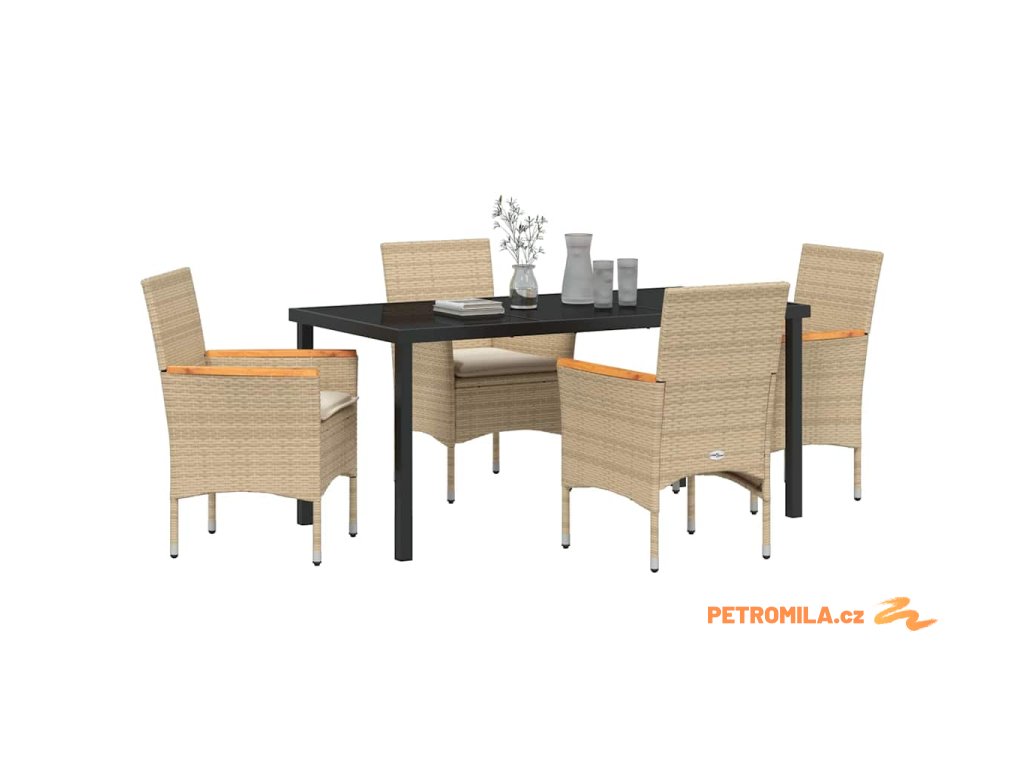 Zahradní jídelní souprava s polštářem 5 pcs Béžová polyratan
