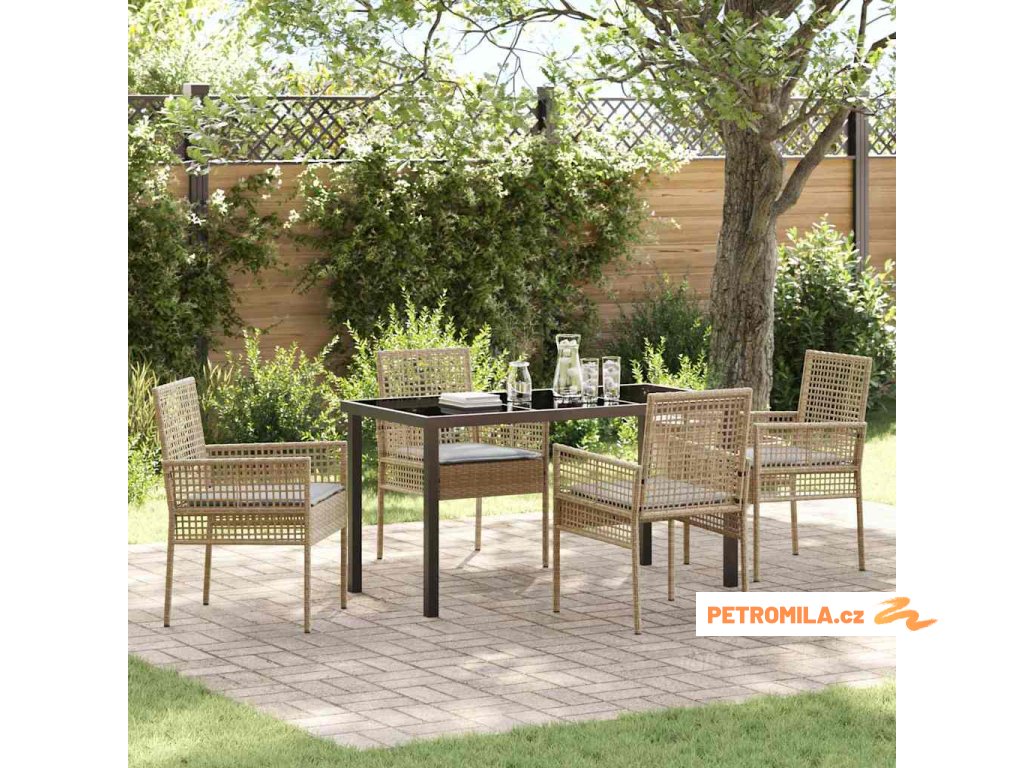 Zahradní jídelní souprava s polštářem 5 pcs Béžová polyratan