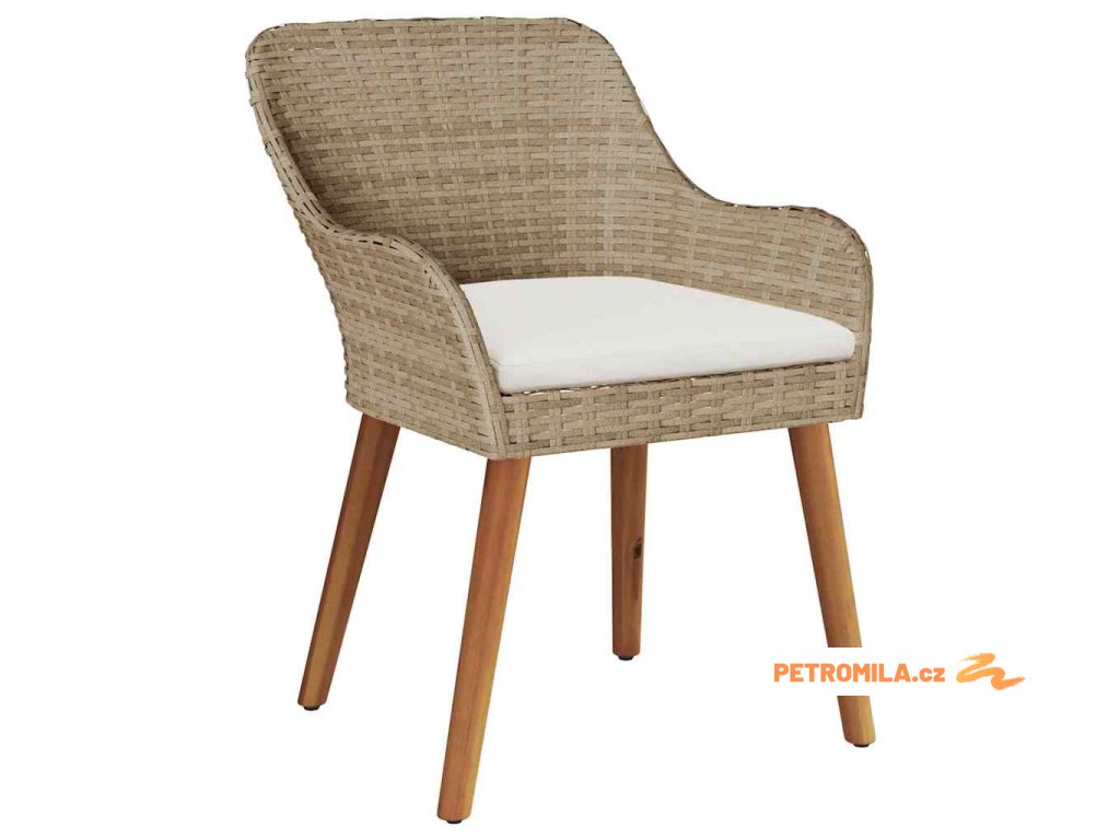 Zahradní jídelní souprava s polštářem 5 pcs Béžová Poly ratan