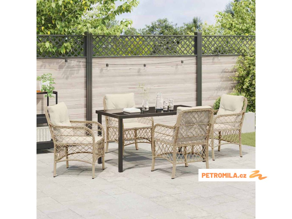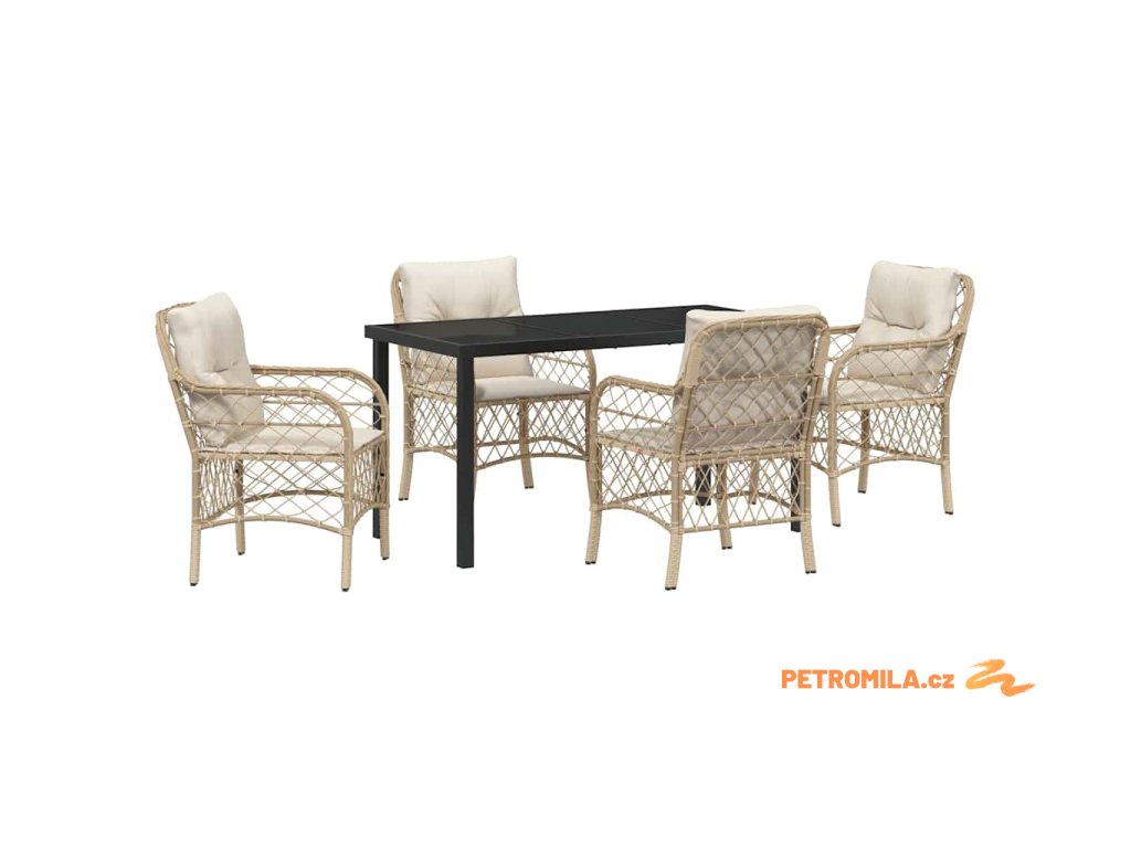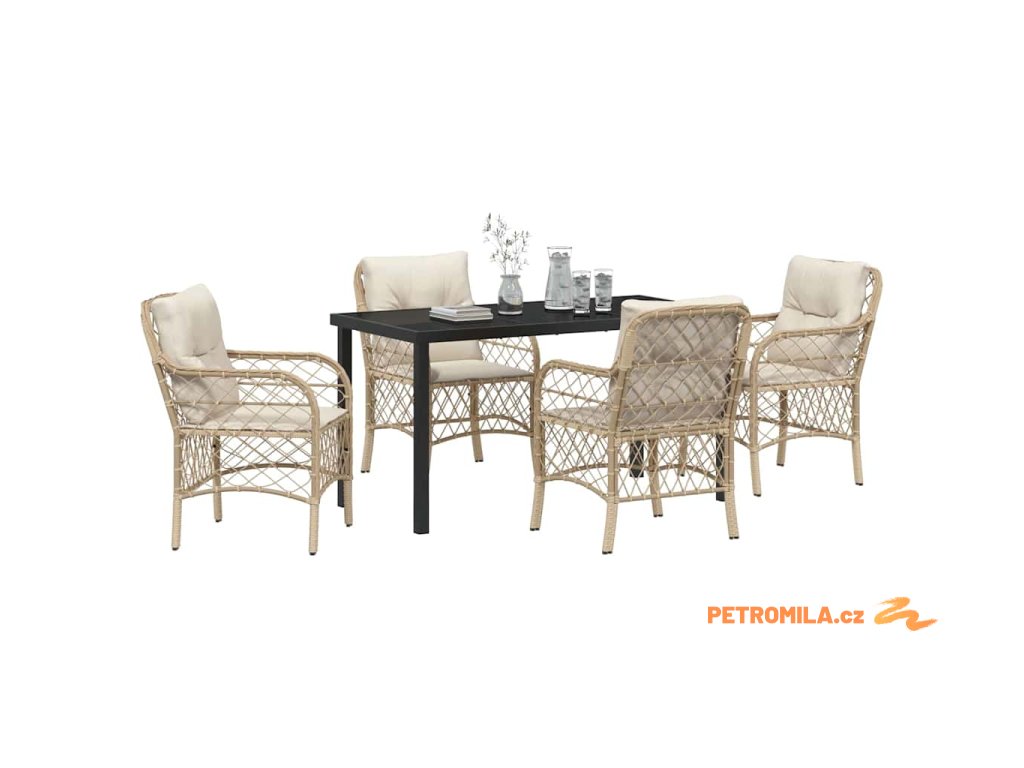 Zahradní jídelní souprava s polštářem 5 pcs Béžová Poly ratan