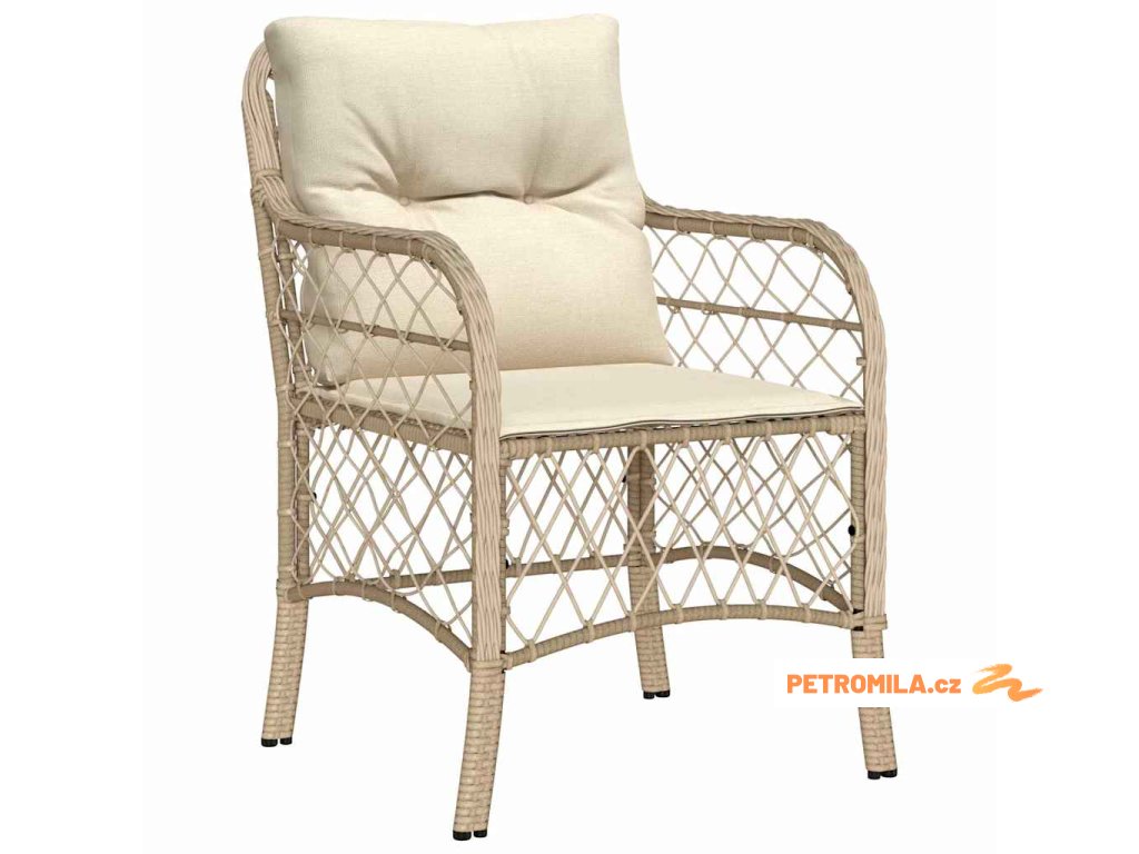 Zahradní jídelní souprava s polštářem 3 pcs Béžová Poly ratan
